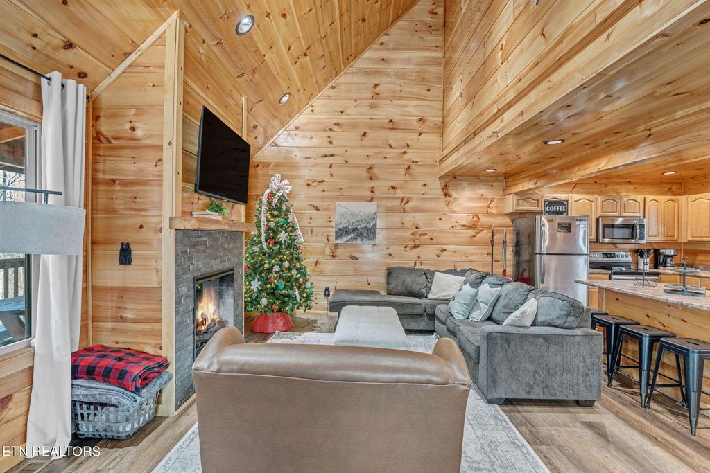 This beautiful 2-bedroom, 2.5-bathroom cabin nestled in the trees for great retreat and privacy is a must see. With 3 levels and an open floor plan, this cabin allows for great entertainment areas for large groups as well as privacy at night with the bedroom layout. Offering an open kitchen and living room on the main floor and a large entertainment / game room space in the down level. Enjoy the privacy on the back multi-level decks and peaceful views from the hot tub. This cabin is very spacious and allows plenty of space up to 12 guests. Bringing in over $63,000 in rent in 2025, This cabin awaits its new owner and is located just minutes to the parkway and all the attractions in The Smoky Mountains. Call today to schedule your showing. Buyer to verify all information