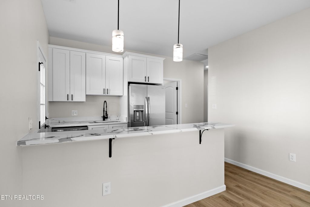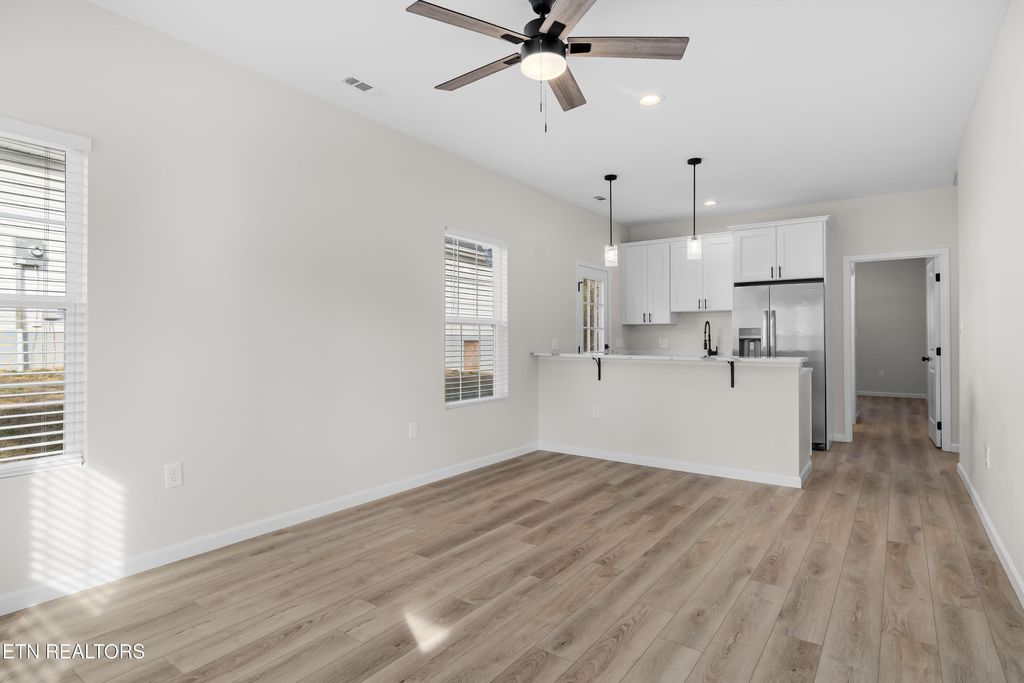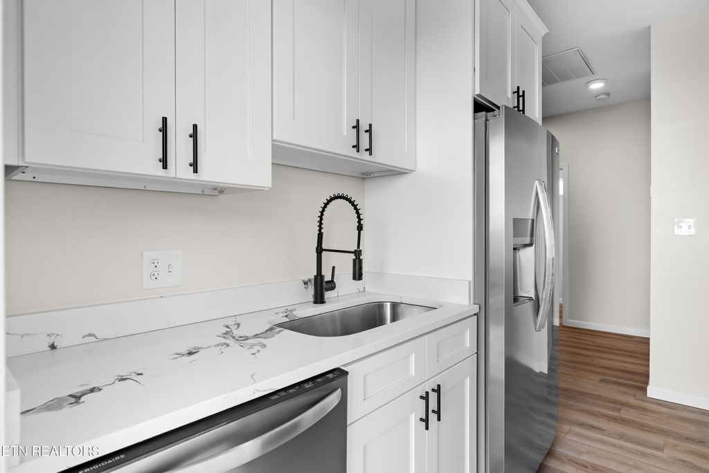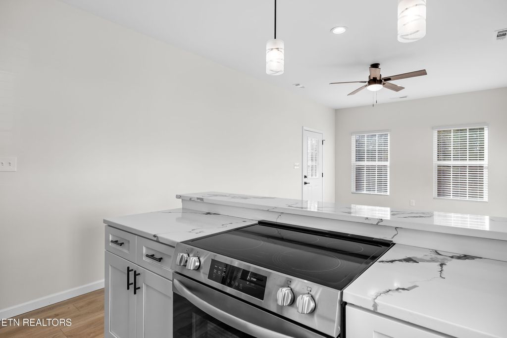 This thoughtfully designed home features **quartz countertops throughout, including in both bathrooms, along with a stylish kitchen equipped with all stainless steel appliances that stay"”**dishwasher, low-profile range, microwave, and refrigerator**. LVP flooring runs throughout the home, providing durability and easy care with no carpet anywhere.
