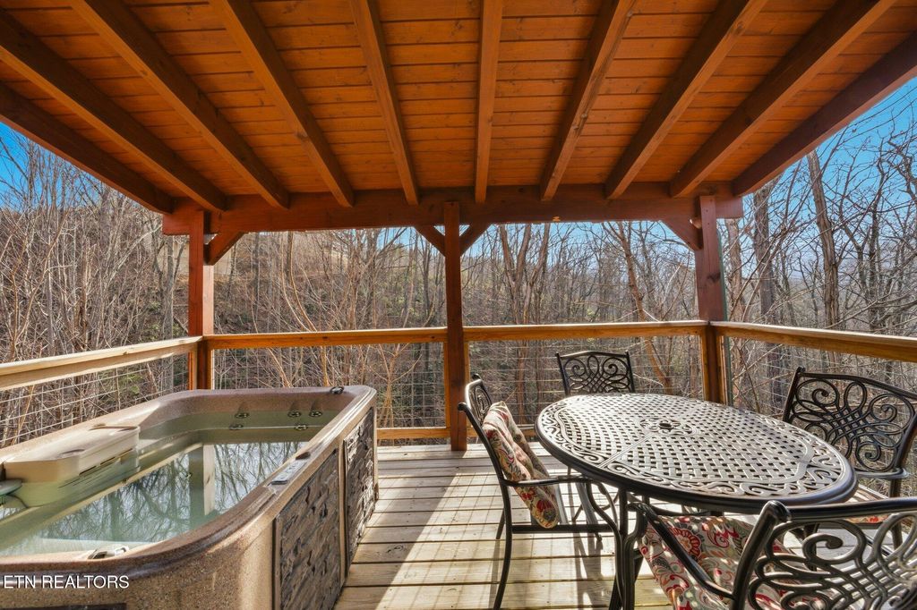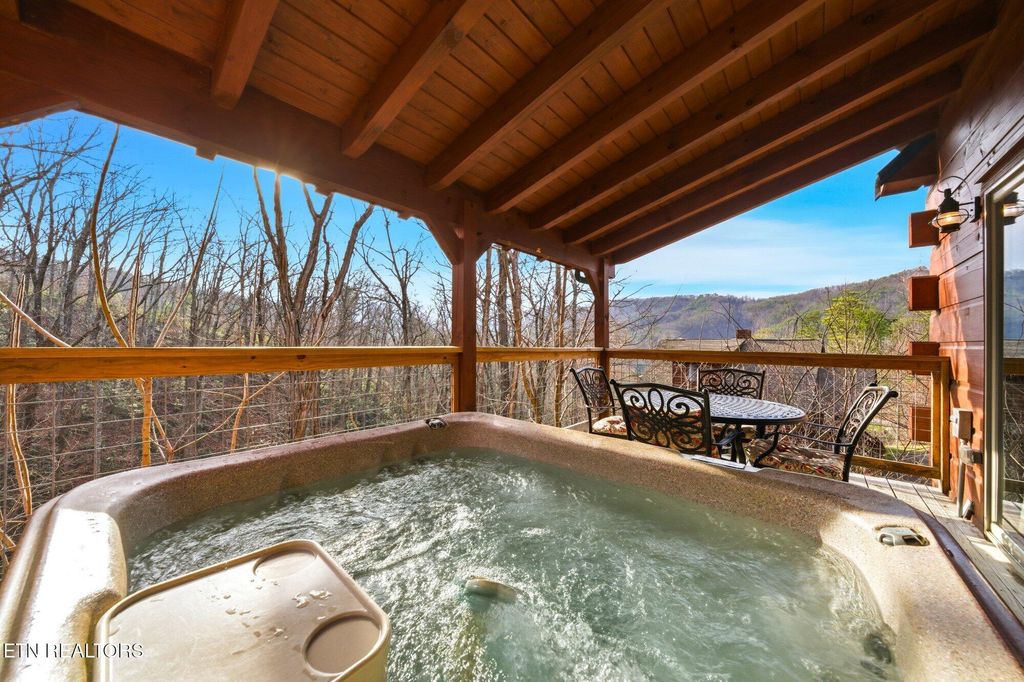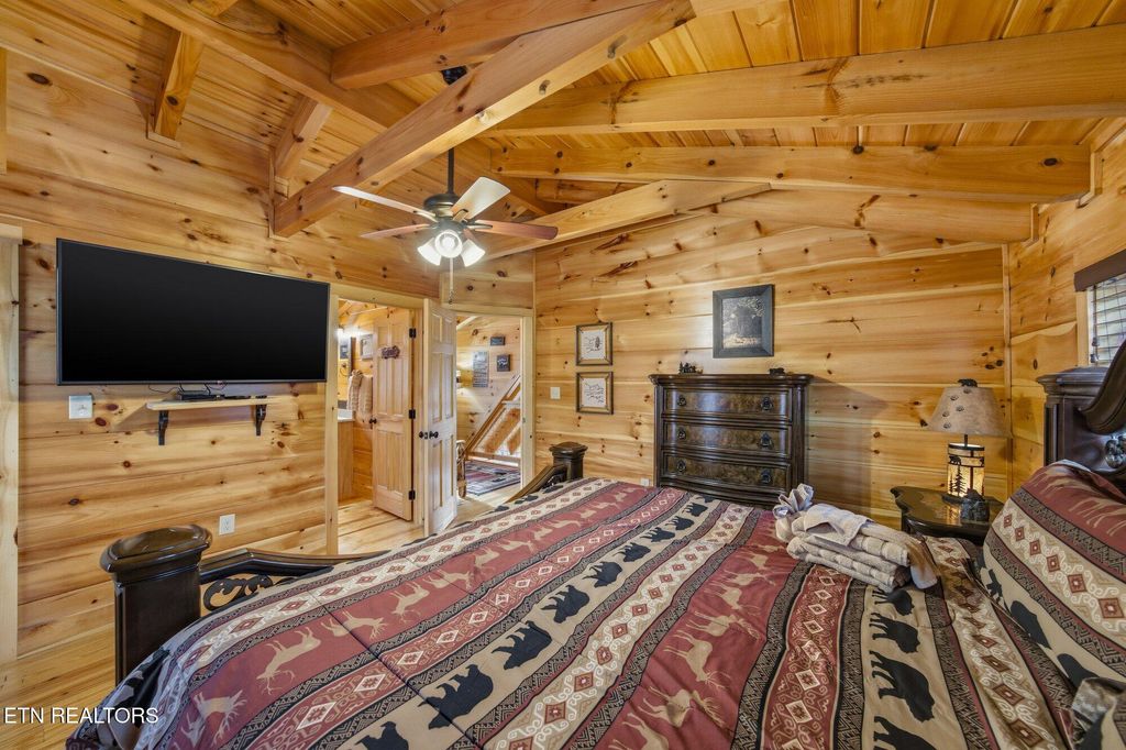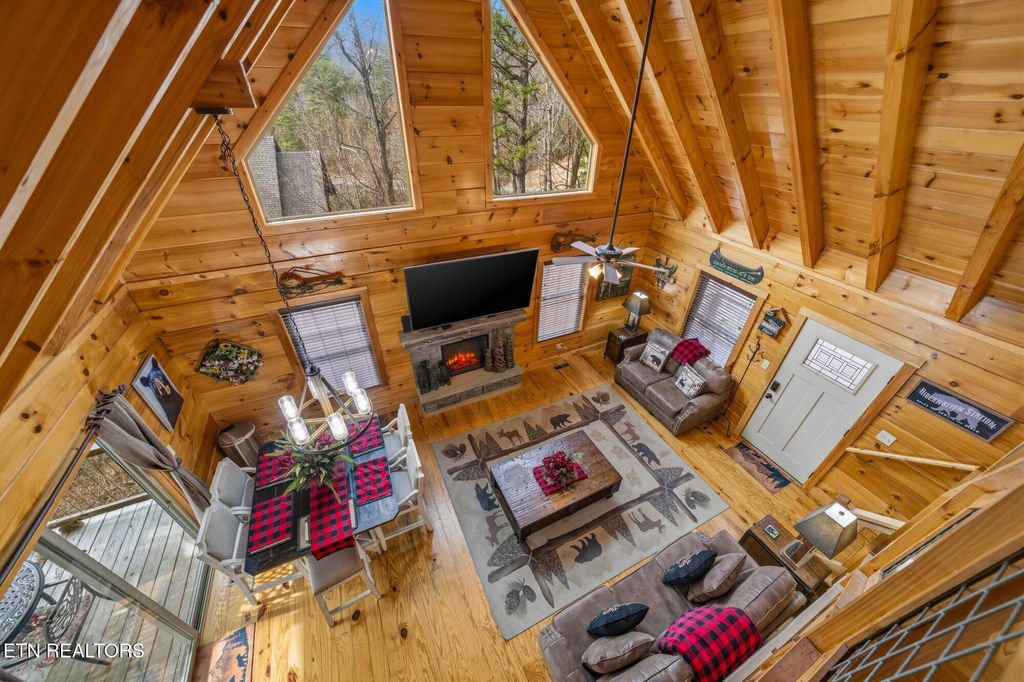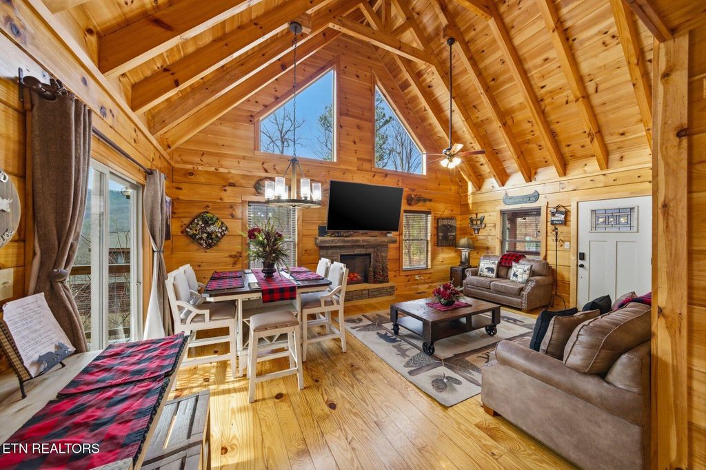 INVESTORS!! Turnkey 3 bedroom 3 bath cabin located in a gated community in Gatlinburg, minutes from Pigeon Forge, and the Great Smoky Mountains National Park. Each bedroom features its own private ensuite bath, offering comfort and privacy for owners and guests alike. Enjoy stunning mountain views from the deck, perfect for relaxing or entertaining. The main living area boasts cathedral ceilings and a cozy fireplace, creating an inviting mountain lodge atmosphere. Downstairs, a spacious game room offers endless entertainment with a pool table and arcade game. New furniture throughout the cabin adds a fresh, modern touch, and the property has been meticulously cared for. Ideal as a primary residence, second home, or short term rental investment! Come check out this cabin.