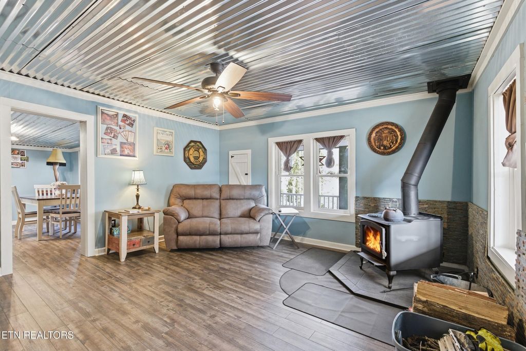 Charming 2 bed, 1 bath farmhouse on 1.54 acres in beautiful Townsend, TN, perfectly suited for homesteaders or as an overnight rental investment. Nestled near the peaceful side of the Smokies and just minutes from Great Smoky Mountains National Park, this property offers privacy, versatility, and mountain charm. The upstairs features two additional rooms ideal for bonus space, an office, or extra sleeping quarters. Outside, the land is already set up for a self-sufficient lifestyle with a nice barn, chicken coops, storage shed and a wood shed. Inside, the cozy living room is anchored by a wood-burning stove, creating a warm and inviting atmosphere year-round. Whether you're seeking a full-time residence, weekend retreat, or income-producing property, this one checks all the boxes.