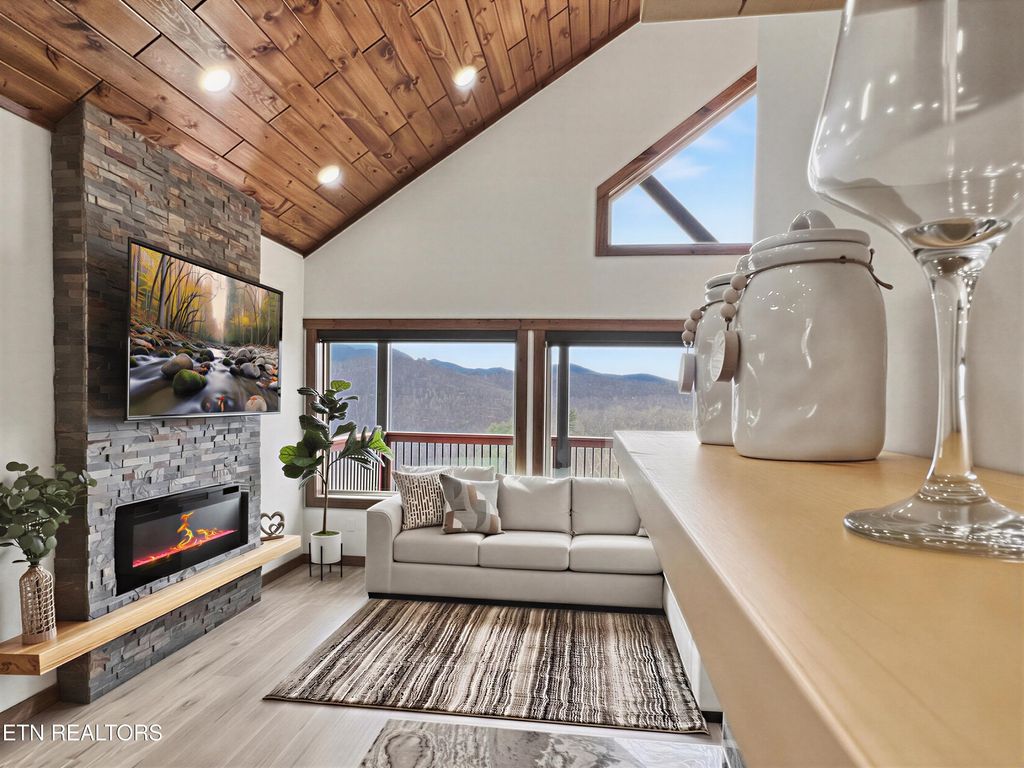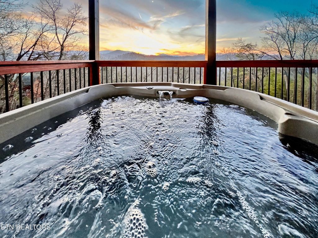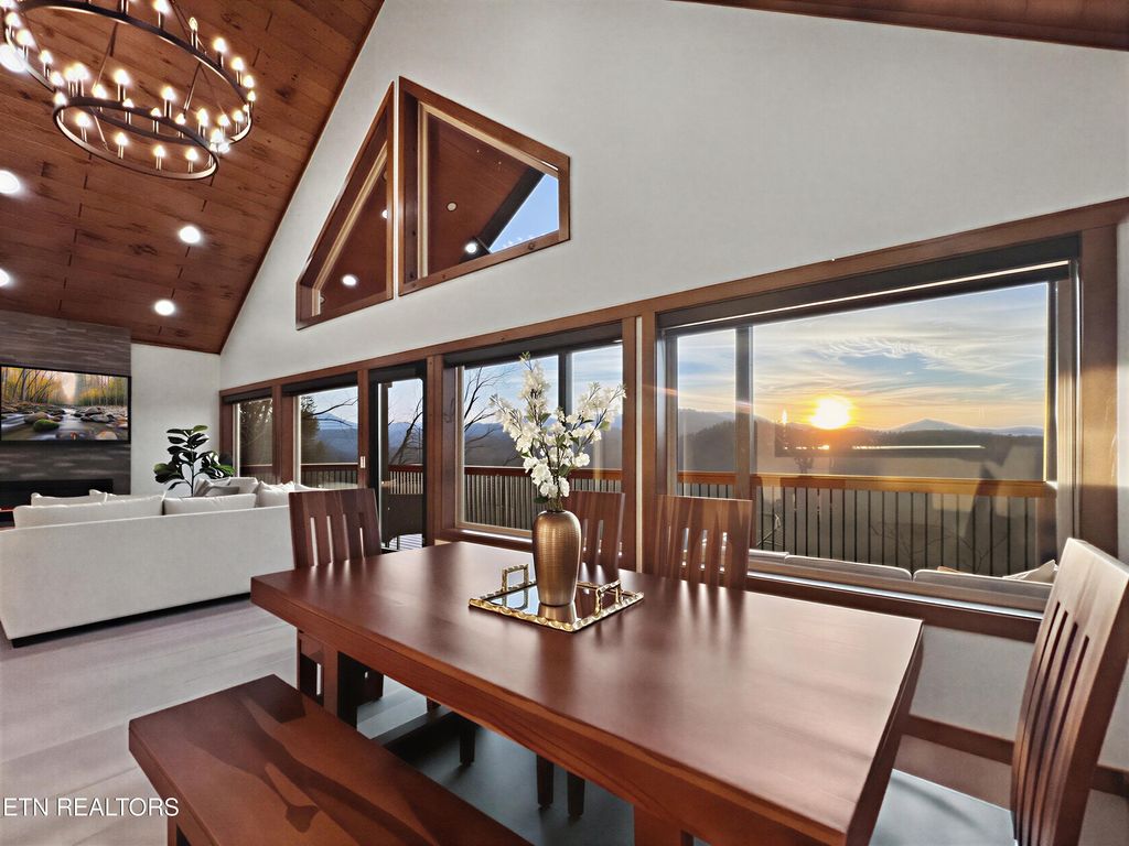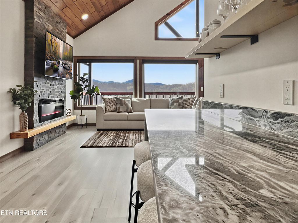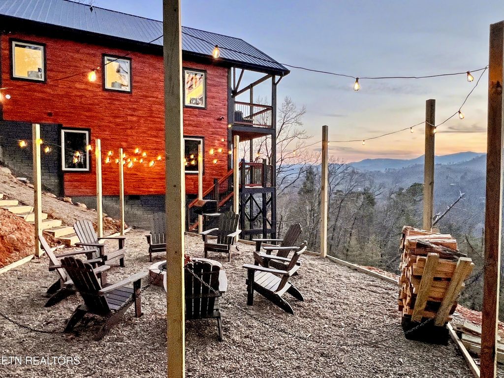 This brand-new home is an EXCEPTIONAL INCOME-PRODUCING OPPORTUNITY, offering BREATHTAKING VIEWS AND STUNNING SUNSETS. This new-construction luxury cabin features three spacious bedrooms, each with a private en-suite bathroom. The home showcases elegant granite countertops throughout, highlighted by a striking waterfall kitchen island. Enjoy outdoor living with a fire pit overlooking breathtaking views and unforgettable sunsets.