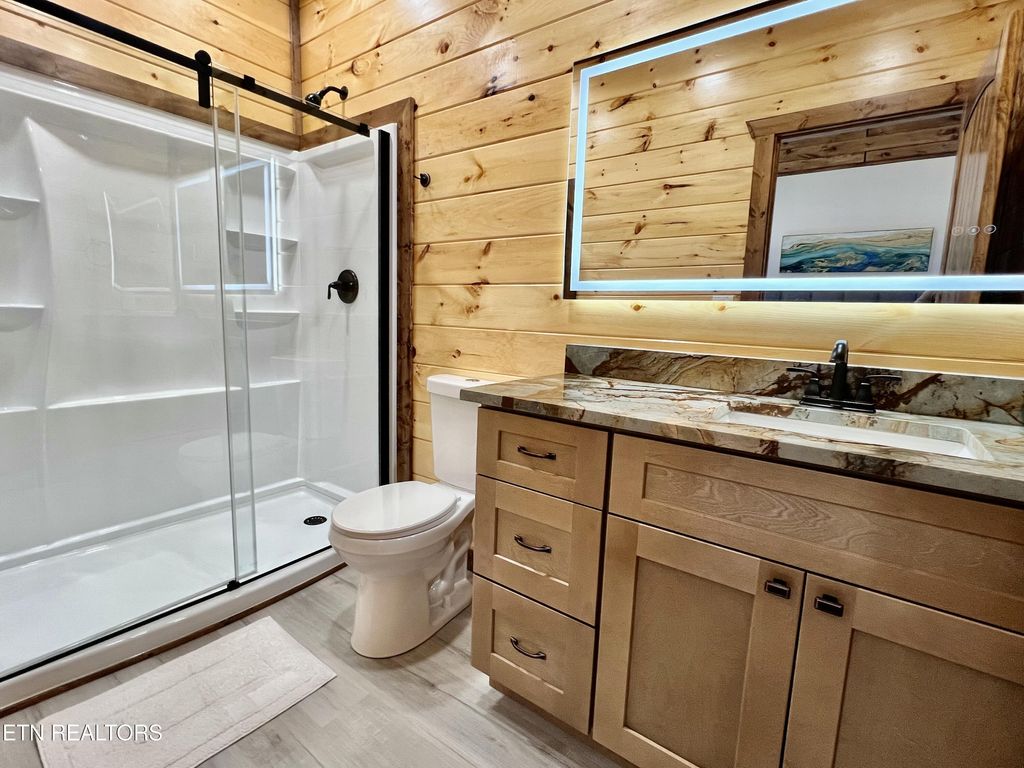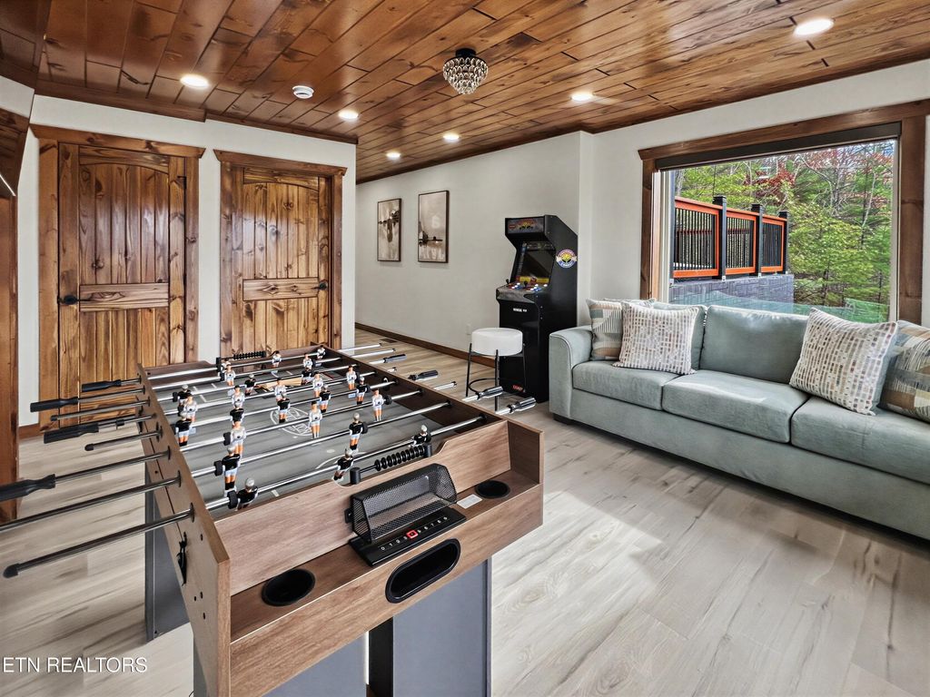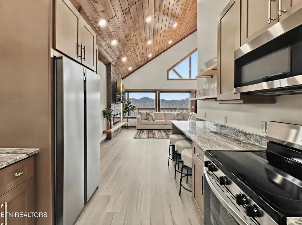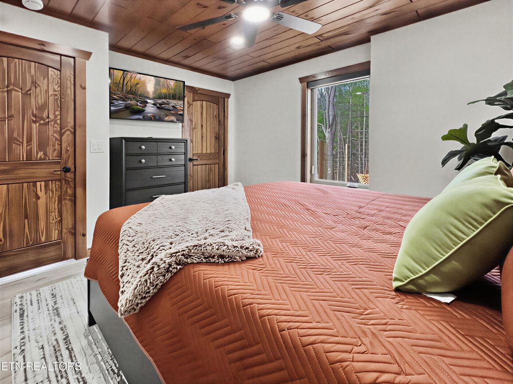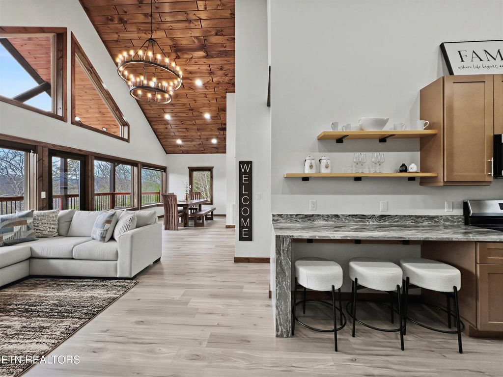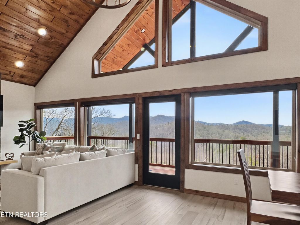 This brand-new home is an EXCEPTIONAL INCOME-PRODUCING OPPORTUNITY, offering BREATHTAKING VIEWS AND STUNNING SUNSETS. This new-construction luxury cabin features three spacious bedrooms, each with a private en-suite bathroom. The home showcases elegant granite countertops throughout, highlighted by a striking waterfall kitchen island. Enjoy outdoor living with a fire pit overlooking breathtaking views and unforgettable sunsets.