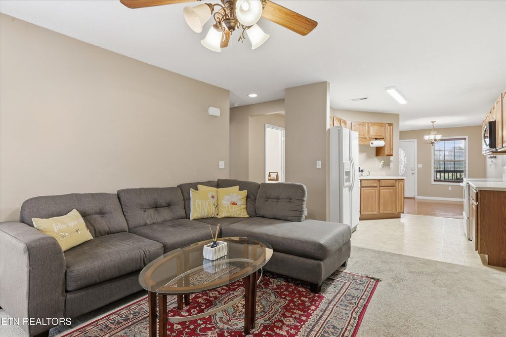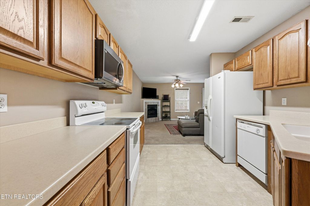 All brick condo in Maryville City with a Mountain View! Open layout with Spacious kitchen, semi-formal dining Livingroom with gas fireplace. Solid surface countertops in kitchen. Large master bedroom and bathroom on the Main level, large walk-in closets in master bath (Master Bathroom has been updated) Upstairs features 2 large guest bedrooms with walk-in closets and a full bathroom. 2 car garage with lots of attic storage. Private back patio. Great Price for an all Brick 3 Br 2 Car Garage Condo in Maryville City!