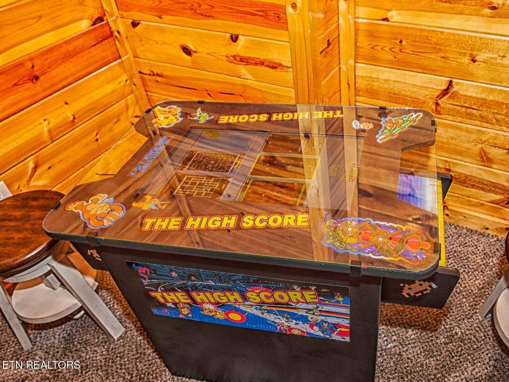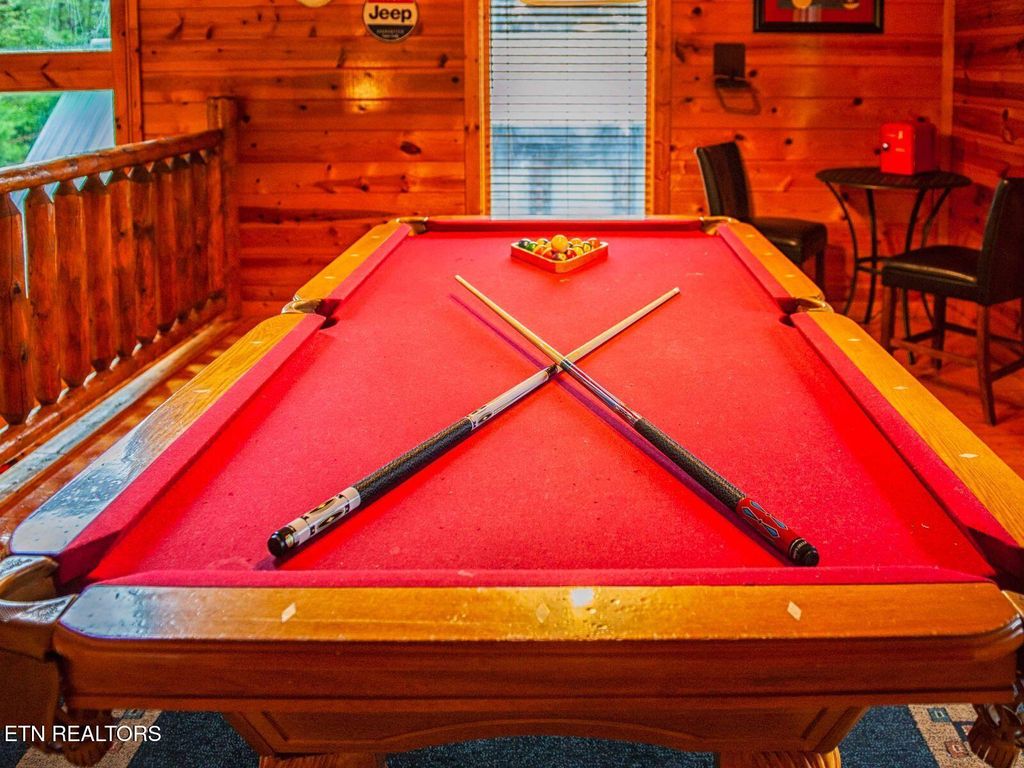 Lower level offers a 2nd living area/game/TV area/Multicade/foosball/Queen sleeper sofa/ King bed/2 Queen Beds/full bath/hot tub.
