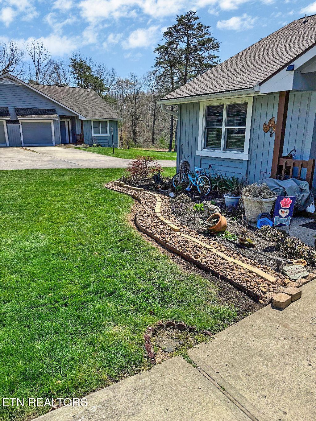 Welcome home to your home! This 2 bedroom 2 bathroom condo is nestled on the beautiful Obed River. When you enter the home you are welcomed into a bright and open foyer that leads into a spacious kitchen area with an island, plenty of cabinetry, and stainless appliances. There is a beautiful bay window that lets in plenty of natural light and makes for a lovely eating area. The living space is continuous with the kitchen which allows for plenty of room for entertaining. The vaulted ceilings make the place feel very spacious. The living area has a natural gas fireplace which is functional and creates a relaxing environment. Possibly, the best feature of your new home are the glass doors that lead out to your amazing Trex deck that spans the entire back of the condo. Take your coffee out to the deck and sit and rest enjoying the Obed River and the nature that nestles around it. The primary bedroom is off of the living area and is a large and welcoming space with plenty of room, an ensuite bathroom with a walk-in low curb shower with built in seat. The primary closet has an additional laundry area conveniently included inside. The owners are willing to include the washer and dryer! The main feature of the primary bedroom is a second set of glass doors leading out to the gorgeous Trex deck. The guest bedroom or office space is off of the foyer and has plenty of natural light and space with a large closet. The guest bathroom is spacious and includes a tub shower combo. The hall to the guest bathroom has an additional utility room that has washer / dryer hookups. This condo also boasts the functionality of an additional storage room and a one car garage which is a huge bonus. There is also a wonderful exterior storage room on the deck for storing planting tools or barbecue items. This lovely condo is move in ready and waiting for you!