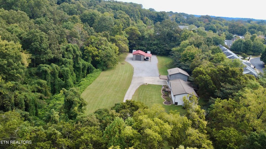 This impressive home sits on a secluded 1.8+/- acre lot just outside the Town of Farragut limits and represents an incredible buying opportunity for a move-in ready West Knoxville home with an awesome 25x30 detached shop building with endless potential. This rare 1.8+/- acre property is currently zoned agriculture with potential for mini farm or use as desired. Featuring dual primary suites, gorgeous hardwood floors, and exceptional outdoor living spaces, this property offers both luxury and functionality.