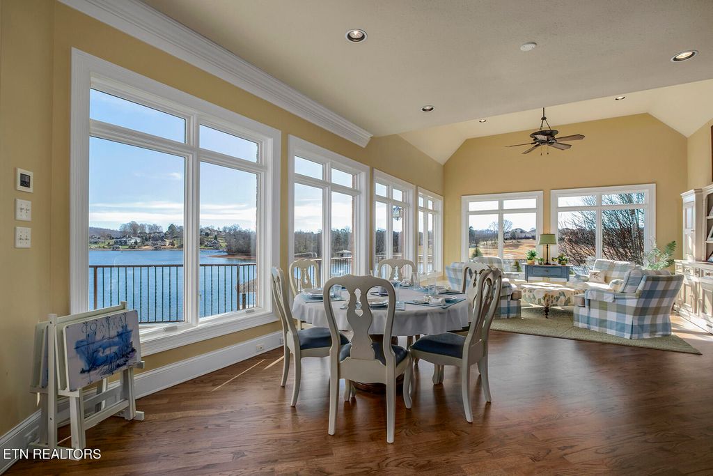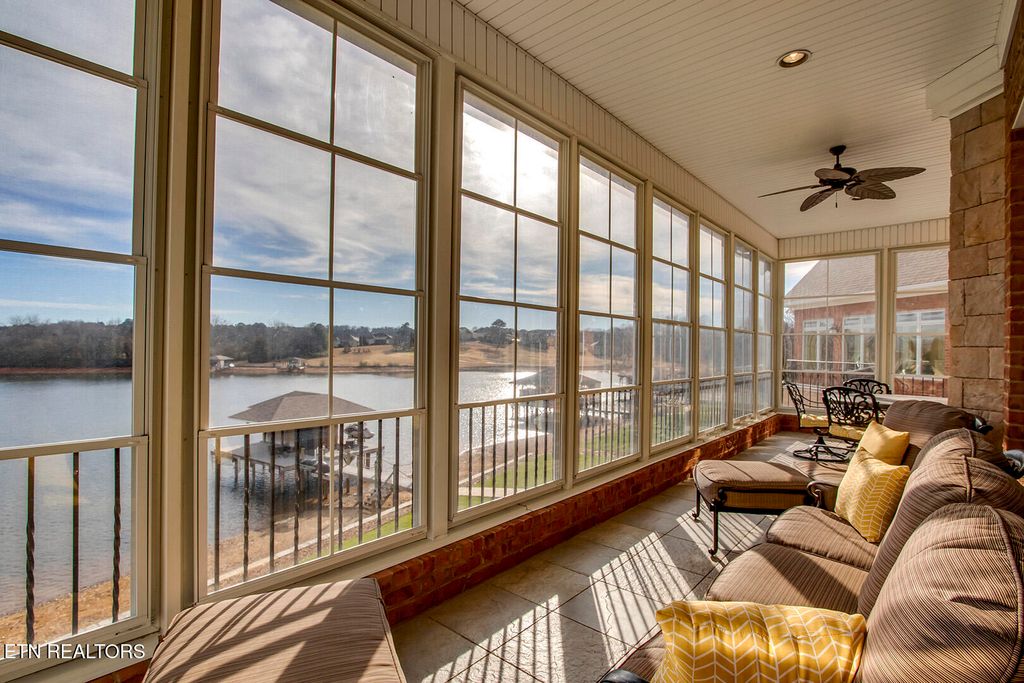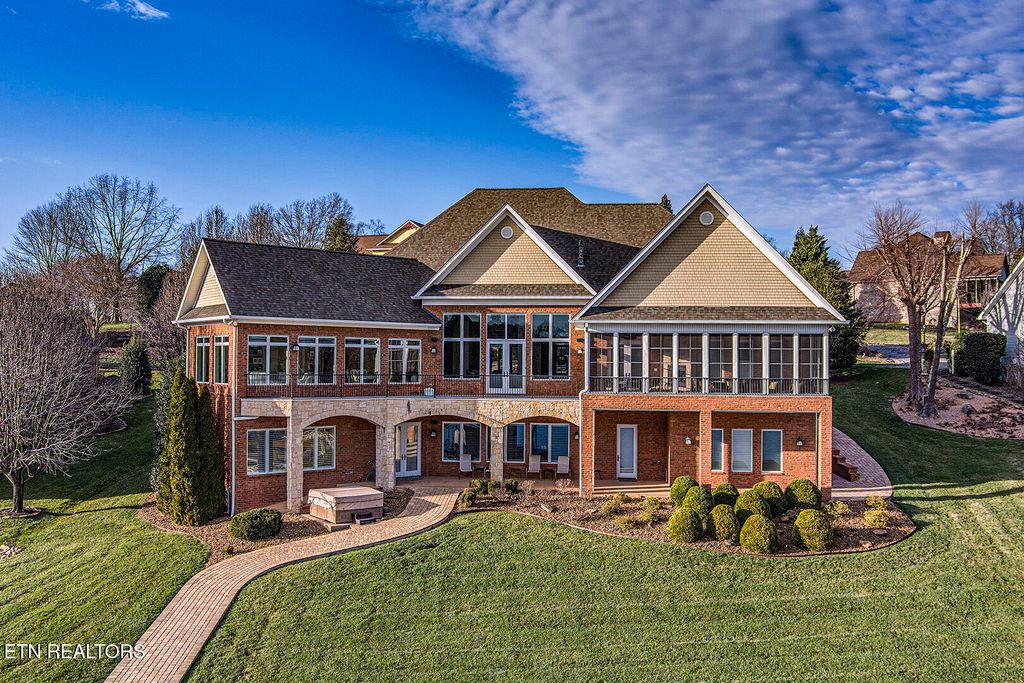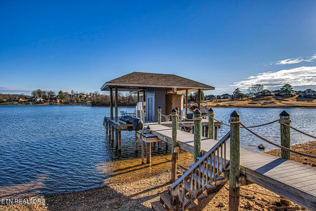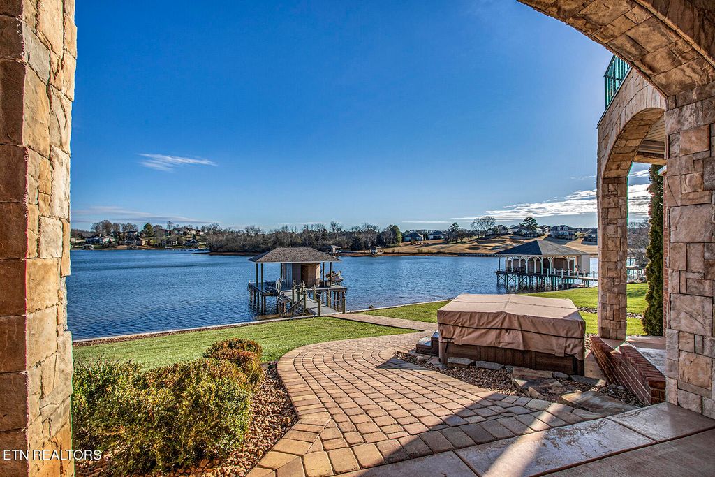 Custom built home with brick & stone exterior in premier waterfront location with all the upgrades and move in ready in Tellico Village--Sweeping water views of main channel to #8 green at Tanasi Golf Course--From the time you enter the home you see the many custom features, high ceilings and an open floor plan with water views along the entire 84 foot back of the home--see beautiful sun and moon rises from the back of the home--there are 2 large bedrooms with full baths and a .5 bath, an office, great room, large kitchen area, breakfast area, formal DR and large gathering area, there is an outside deck and 3/4 season screened porch with slid up windows --there is also a closet to a shaft downstairs if you want to add an elevator--downstairs is 2 large bedrooms, 2 full baths and .5 bath, media room, full kitchen area, super large rec room, exercise rm & storage plus a safe room--there is a covered porch and hot tub and an paver walkway with gentle slope to the dock-home sits on a slab with poured concrete walls and a radon mitigation system--there is also a laundry area up and down--plenty of storage--there is a circular, paver driveway to 3 car garage, the dock has boat lift with cover and 2 jet ski lifts and a sea wall to protect back yard--irrigation and security system--home sound system--all sq footages and measurements Buyer to verify--don't miss this fabulous and well priced lake house to call your forever home