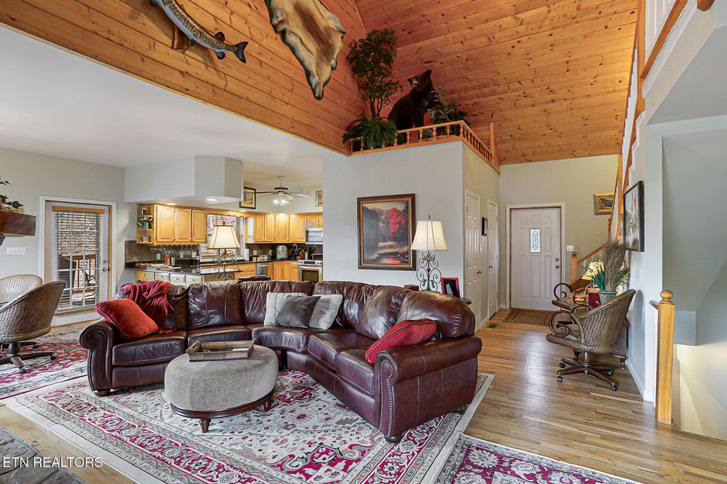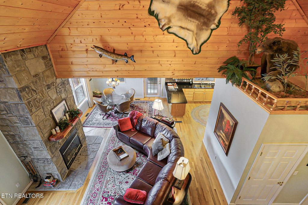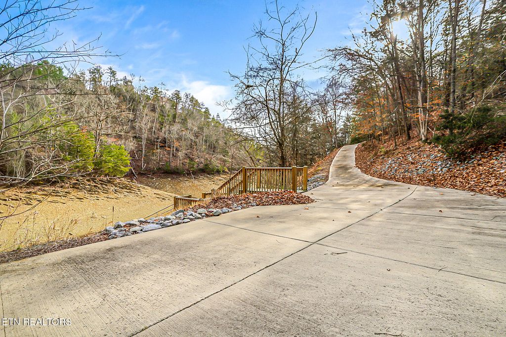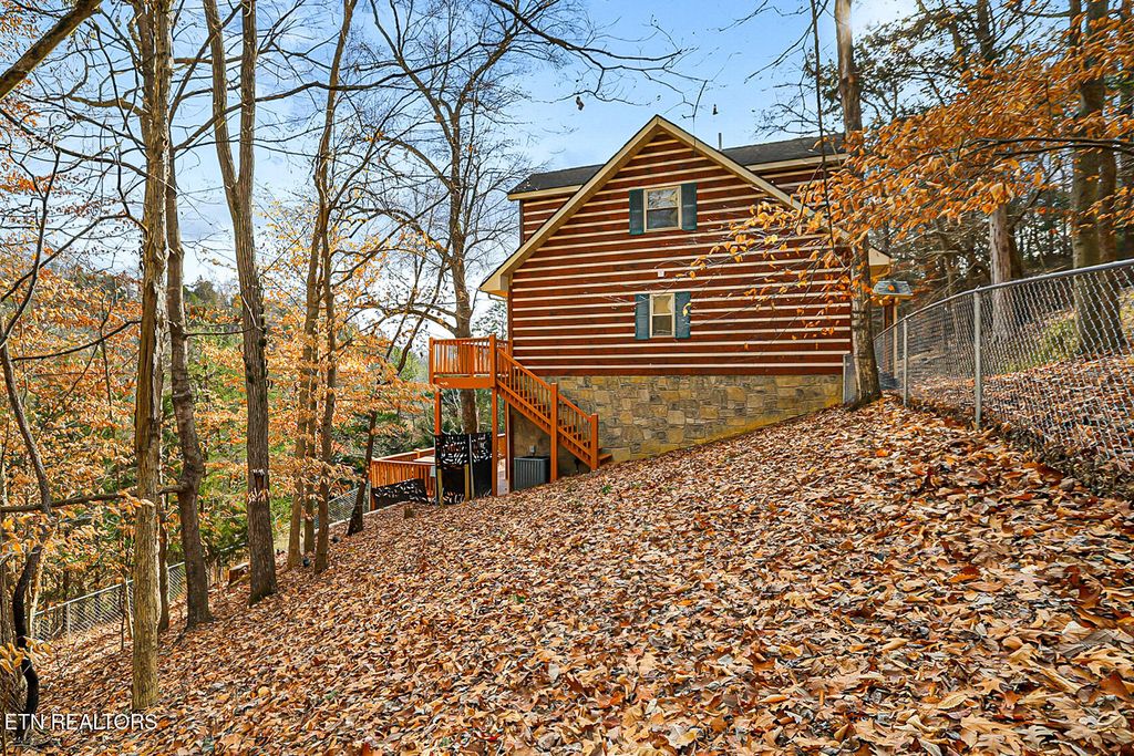 Welcome to 429 Filet Ln, a rare opportunity for permanent waterfront living on 1.82 acres with more than 300 feet of shoreline on Douglas Lake. Tucked into a quiet lake cove with immediate access to the main channel, this setting offers calm water, abundant wildlife, and a level of privacy that is increasingly hard to find. The location places you within close proximity to Douglas Lake recreation, historic downtown Dandridge, shopping, dining, and seasonal community events, with convenient access to Gatlinburg, Pigeon Forge, Dollywood, and the Great Smoky Mountains National Park. The home features a log veneer exterior with multiple decks and covered outdoor spaces designed to maximize lake views and outdoor living. A fully fenced side yard provides a secure and functional outdoor area. A concrete drive leads to an attached garage with workspace and continues down to the lakeside dock for easy water access. Inside, the home offers three bedrooms and three and a half baths across a thoughtfully designed multi-level layout. The vaulted great room is anchored by a wood-burning fireplace and opens to a spacious kitchen, dining, laundry closet, and deck access. The upper level hosts the primary suite with an attached bath, while the main level includes two secondary bedrooms that share a guest bath. The lower level adds a versatile gaming or flex space with a second fireplace, access to lower deck with hot tub, a sitting area, guest bath, and a unique wine room with dual hidden entrances, one concealed behind a bookcase and another bookshelf door leading to additional storage beneath the stairs. Recent maintenance and improvements include exterior staining and deck painting completed approximately one year ago, chimney and flashing repairs, door adjustments, deck board repairs, and garage door servicing. Additional features include a whole-house filtration system and a tankless water heater. A home inspection has already been completed and is available for review upon request, or buyers may obtain their own. Furnishings are negotiable, including a golf cart for convenient access between the home, dock, and lake. This is a well-positioned waterfront property offering privacy, recreation, and convenience. Schedule a private tour to experience the setting, layout, and lifestyle this property provides. All information is deemed reliable but not guaranteed. Buyers are advised to verify all essential details in real estate transactions.