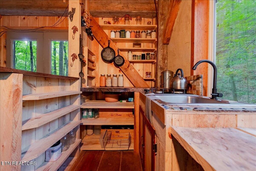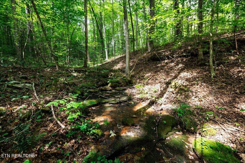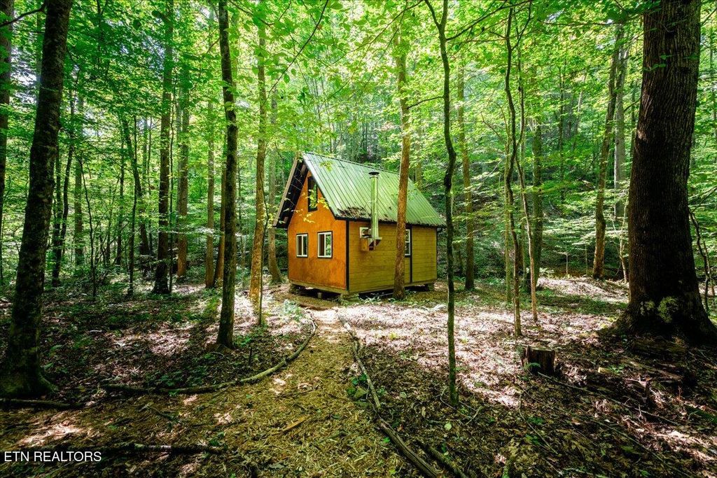 The forested 41.6 acre lot includes an off-grid timber frame cabin (224 sq ft), a timber frame outbuilding/shop (330+ sq ft), a composting outhouse, and a firewood shed. CABIN & WORKSHOP CONVEY AT NO VALUE ● The cabin is built from timber onsite, enclosed with natural insulation and lime plaster finishes; heated by a Jotul wood stove. ● Power & water available at the road as well as a fire hydrant onsite. ● Additional building sites accessible by an old logging road that goes to the ridgetop. ● Gated community, no HOA, privately maintained gravel road ● Land topography includes a ridgetop with 360 views in winter, a cove/holler, and a creek basin ● Property accessible on foot by a hand-laid trail system and foot bridges. ● Mature hardwood forest with poplar, oak, white pine, hemlock, beech, maple, magnolia, etc ● Wildlife: deer, turkey, hawks, owls, turtles, salamanders, black bear ● Flora: wild ginger, pawpaw, wild blueberries, spicebush, elderberry, rhododendron, mountain laural, chanterelles, oyster mushrooms, other wild edibles ● Garden area with 7+ hours of sun ● A labyrinth, rustic campsites, several stone fire pits. ● Location: 10 minutes to Wartburg (brewery, coffee shop, groceries, farmer's co-op); 15 minutes to Frozen Head State Park (home of the Barkley Marathon); 30 minutes to Obed Climbing Area & Lilly Pad Hopyard Brewery; 75 minutes to downtown Knoxville
