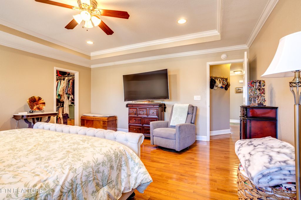 The oversized primary suite is a true retreat, featuring tray ceilings, walk-in closets, a jacuzzi tub, and walk-in shower. Two additional bedrooms are well-sized and share a full bath"”perfect for guests or family.