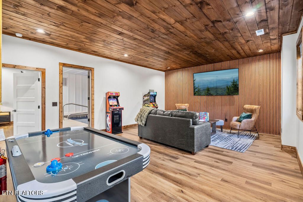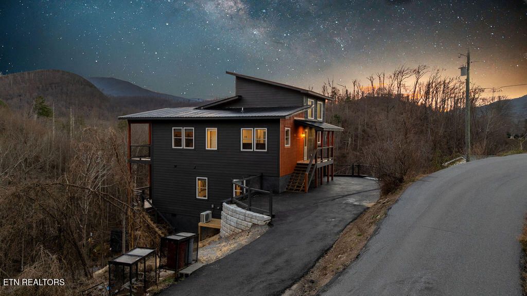 INVESTORS!!! LOCATION, LOCATION, LOCATION IN THE HEART OF GATLINBURG, TN LESS THAN 1 MILE FROM DOWNTOWN ATTRACTIONS AND ENTERTAINMENT! BRAND NEW JUST COMPLETED END OF DECEMBER 2025 SLEEK AND UNIQUE MODERN 3BR/3.5BA HEATED INDOOR GUNITE POOL WITH WATERFALL LUXURY CABIN WITH MOUNTAIN VIEWS IN GATLUNBURG, TN! SOLD FULLY FURNISHED AND TURNKEY READY FOR SHORT TERM RENTAL! LOADED WITH AMENITIES TO MAXIMIZE REVENUE WITH A STATE-OF-THE-ART ARCADE GAMEROOM/MEDIA ROOM, HOT TUB, AND MORE! PROJECTED GROSS INCOME OF APPROX $130,000. Being sold turnkey with all the bells and whistles! NO HOA OR MANAGEMENT RESTRICTIONS! Flexible layout allows sleeping accommodations for up to 12, enhancing rental potential . No expense has been spared here and the unique finishes will make this one stand out on the rental market! Interior features include: open floorplan, soaring vaulted wood ceilings, sleek design throughout, high end finishings, accent walls and wood accents, custom tile showers, luxury vinyl plank flooring, and more! Open kitchen with stainless appliances,quartz countertops, an island with microwave for additional seating, and a dining area allows seating for several. Spacious living room with fireplace for relaxing. Enjoy two bedroom suites (one a King Master Suite and the other a queen over queen bunk room) on the main level both with en suite bathrooms with custom tile with glass enclosures and double vanity sinks. On the lower level, you will find the state-of-the-art arcade gameroom, a third King bedroom suite with en suite bathroom, and a chance to unwind and take a dip in the oversized heated pool in the custom pool room with a wall of marble look tile and a waterfall. Enjoy soaking in the bubbling hot tub all while enjoying the outdoor lighting and star gazing while sitting on one of the multiple levels of decking with outdoor seating. Plenty of parking and paved roads to access the property. Located in a highly sought after location only minutes to downtown Gatlinburg, nature trails, and more! Must see! **Check out the 3D virtual walk through and video!!