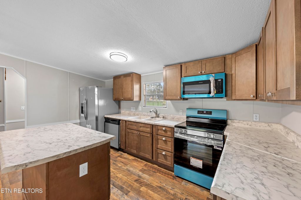 This 3-bedroom, 2-bath home has been newly remodeled throughout and sits on nearly an acre of land, offering space and privacy. The layout provides two separate living areas that connect easily with the kitchen, creating a practical flow for everyday living.
