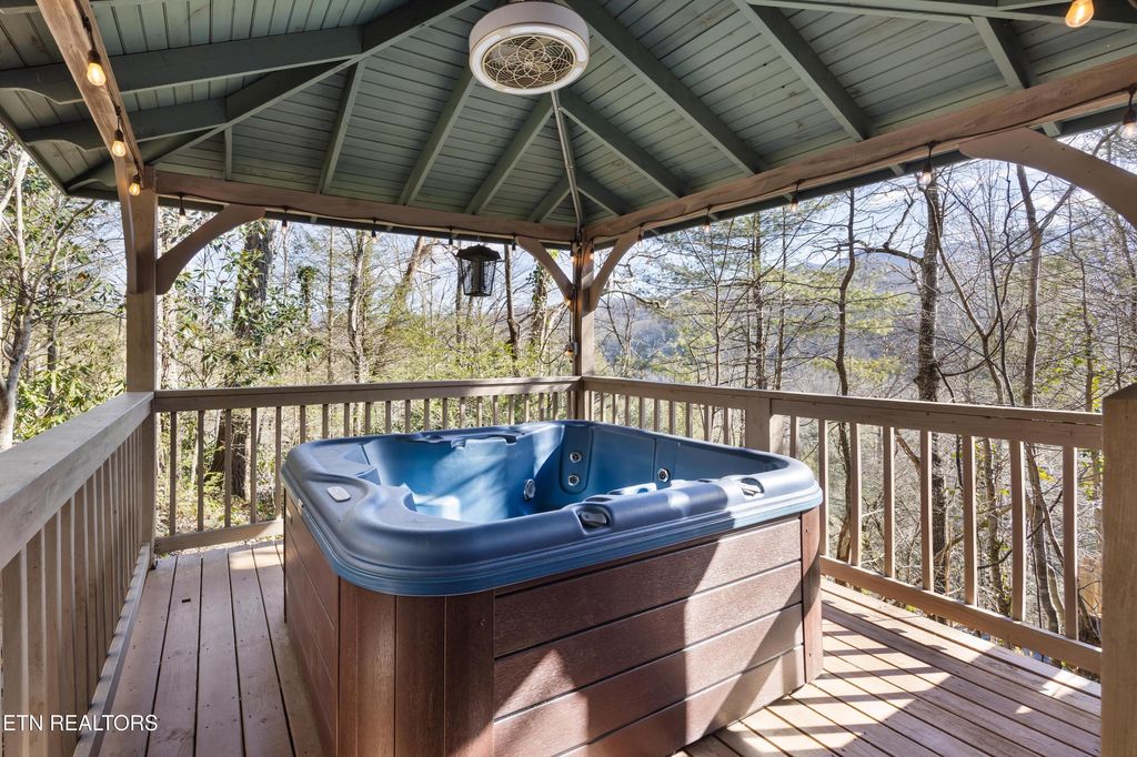 The expansive primary suite offers generous proportions and a large walk-in closet, delivering comfort and flexibility rarely found in Gatlinburg homes. Outside, a three-year-old hot tub sits within a gazebo, offering a private place to relax in all seasons. Seller to provide a new hot tub cover.