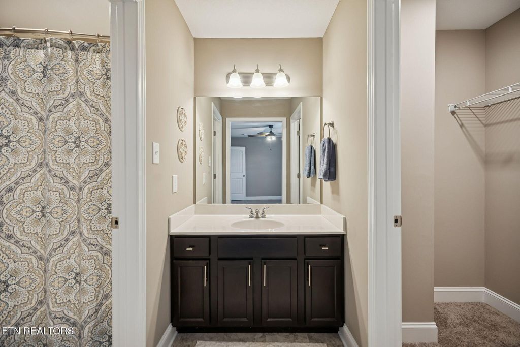 Upstairs Jack-and-Jill style bath setup + walk-in closets