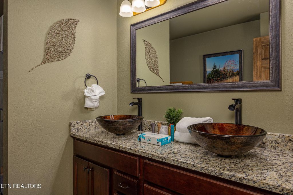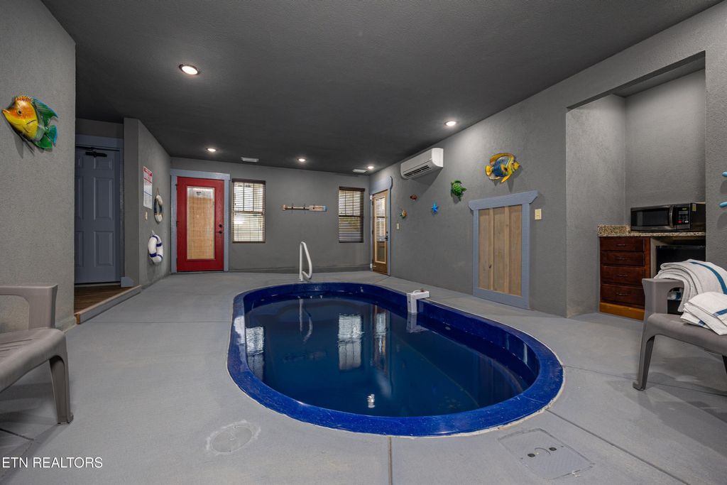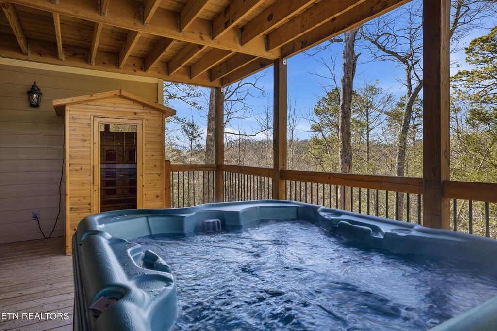 INVESTORS TAKE NOTICE OF THIS LUXURY RENTAL CABIN WITH MOUNTAIN VIEWS!! The cabin name is ''Serenity Peak'' and it is located in an Upscale Mountain Retreat just off the Craft Trail in Laurel Estates at the Glades in Gatlinburg, Tennessee! This cabin is stunning and loaded with features ! This cabin has 4-bedrooms, 4-full bathrooms, 2-half baths and it can easily accommodate 10-12 guests. MOUNTAIN VIEWS & INDOOR SWIMMING POOL!!! There is easy access and plenty of parking too. As you enter on the Main Level take notice of the Open-Concept living space which is great for entertaining large groups of people. The Vaulted Ceilings and Large Windows let in plenty of light. The living area features a Floor-to-Ceiling Stone Fireplace, and large deck on this level with Outside Fireplace, BBQ Grill, Big Round Table and plenty of seating to take in those Mountain Views. The main level features an enormous Gourmet Kitchen that is fully equipped with top-of-the-line appliances, Granite Countertops, and lots of cabinets. The Kitchen is sure to Impress. There is a huge bedroom on the main level with a Stunning Double Sided Rock Fireplace that you can enjoy from the bedroom side or while taking a private bubble bath on the other side in the Large Jacuzzi Tub!! This bedroom also features a full bathroom with double vanity sinks, and a huge walk in tiled shower. On the main level is another half bath that is very convenient for guests. Upstairs you will find a large gaming area with Pool Table, Air Hockey Table, and Arcade Game and additional seating. On this upper level there are 2 other very large & spacious bedrooms each with their own large private bathrooms! When you go to the downstairs area, you will discover the Large Heated Indoor Swimming Pool that guests can enjoy YEAR ROUND!! There is another half bath on this level near the swimming pool, as well as a Microwave and Mini-Fridge. The Entertainment doesn't stop here though. Guests are sure to enjoy the Private Movie Room with Big Screen TV and seating for 9-10 people!! Step just outside onto another huge deck and you will discover your own Private Oasis! There is a bubbling Hot Tub for you to Relax in and unwind. Guests will also love the private Dry Sauna on this level and there is a 4th bedroom with full bath as well !! This Mountain Cabin is situated in the much sought after Laurel Estates Community which includes a neighborhood Outdoor Swimming Pool with Clubhouse, and Outdoor Fire Pits!!! You may never want to leave! However, if you do decide to enjoy other activities such as dining at Ole Red's, The Park Grill, Anakeesta Adventure, or the Gatlinburg Skywalk, you are less than 10 minutes away! Location, Location, Location!!!