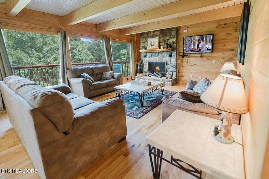This five-bedroom cabin features its own porch or balcony with breathtaking mountain views. Located just minutes from Gatlinburg, it provides quick access to entertainment, dining, and other amenities. The property is fully furnished and move-in ready, making it an excellent opportunity for buyers. It is currently part of a successful overnight rental program, with gross rental incomes of $ 49K in 2025, $66K in 2024, and $74K in 2023. The cabin is spread over three levels: the upper level offers two bedrooms and a bathroom; the main level includes a kitchen, living room, an additional bedroom, and a bathroom; the lower level has two bedrooms, a bathroom, a pool table, and a movie area. Location, location- don't miss this one!