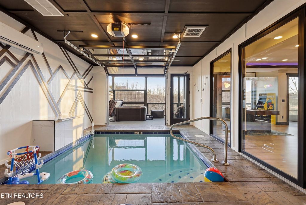Experience the pinnacle of Smoky Mountain luxury in this 3,150 sq. ft. turn-key masterpiece located just minutes from the heart of downtown Gatlinburg. This expansive 3-bedroom, 4.5-bathroom cabin is a premier choice for high-end travelers, featuring a private indoor heated pool for year-round enjoyment and an outdoor hot tub perfect for soaking under the mountain stars. The sprawling floor plan includes a massive downstairs lounge designed for the ultimate guest experience, complete with arcade games, air hockey, and a custom snack bar for easy entertaining. Guests can also enjoy the fresh mountain air at the dedicated outdoor grilling area, making it ideal for summer cookouts. Meticulously maintained and perfectly situated near Great Smoky Mountains National Park and local attractions, this property offers a rare combination of space, high-end amenities, and prime location for the discerning buyer.