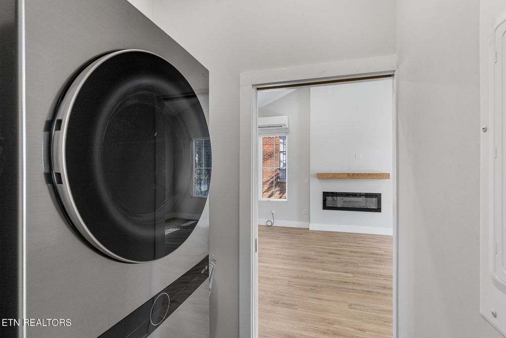 A separate laundry room adds convenience, while the living area is enhanced by a cozy electric fireplace.