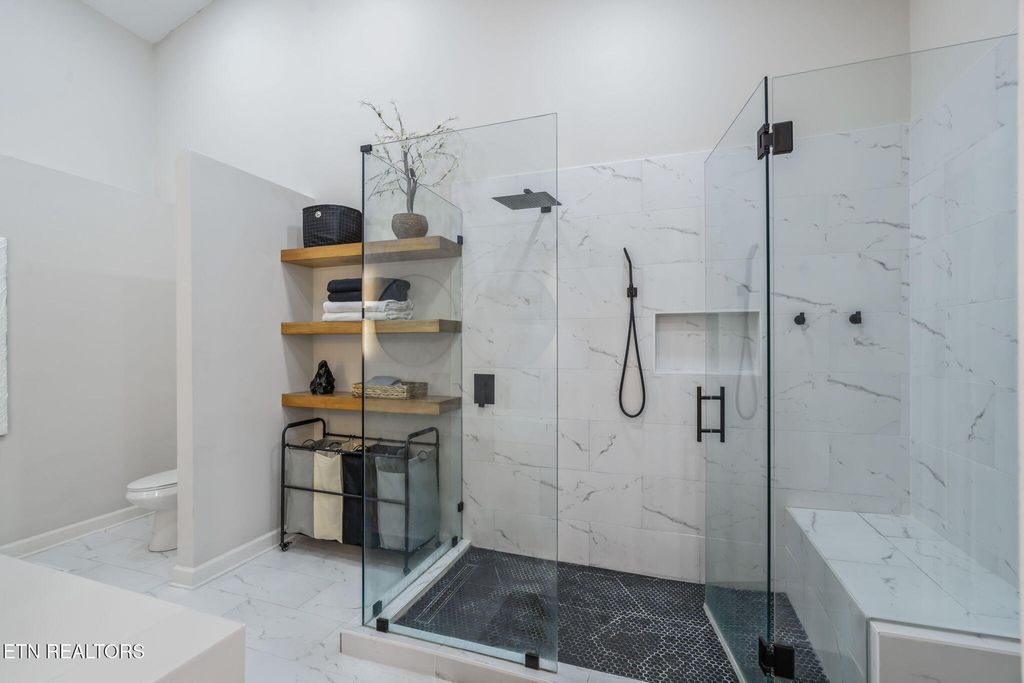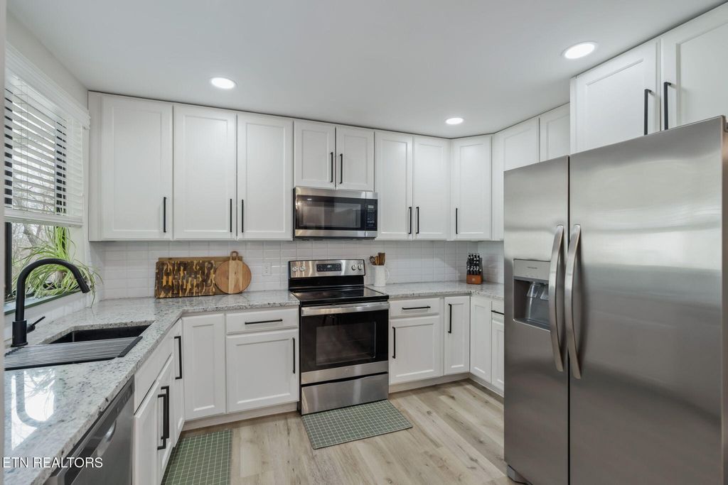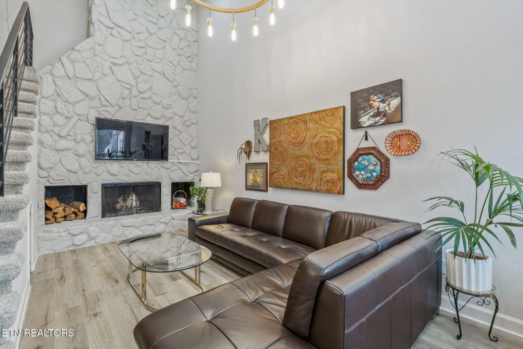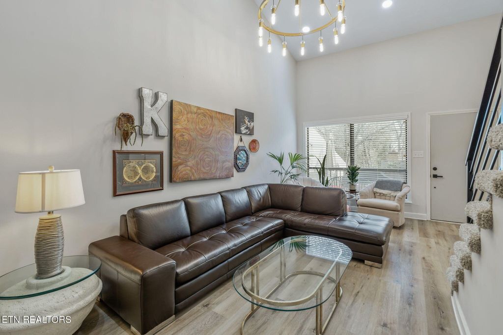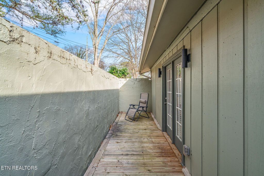 Modern updated townhome with single car garage and multiple outdoor seating areas located in the city of Knoxville in a peaceful wooded setting. Updated 2022 with low maintenance LVP flooring throughout the main level, new kitchen cabinets, new granite tops, new stainless appliances, modern handrail, a 2-story wood-burning fireplace, designer lighting, vaulted ceilings and accent wall details in the living rm and 1/2 bath. Huge walk-in shower with built-in bench and glass surround along with a modern wall-mounted vanity in the master. Master offers its own private patio and second bedroom has a private deck. Quick move-in, seller has performed a pre listing inspection and made necessary repairs.