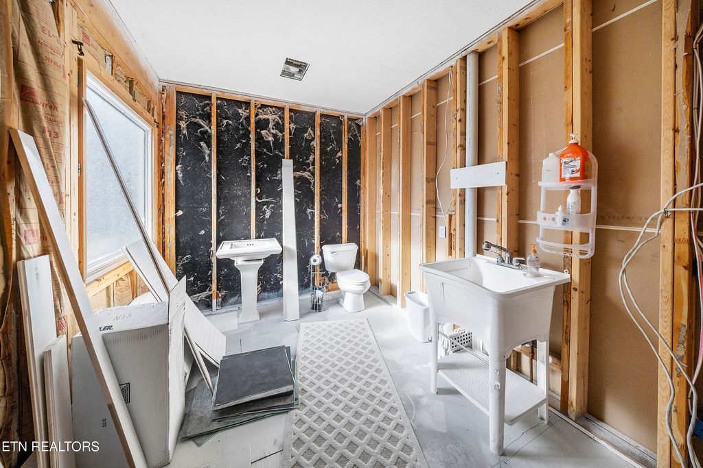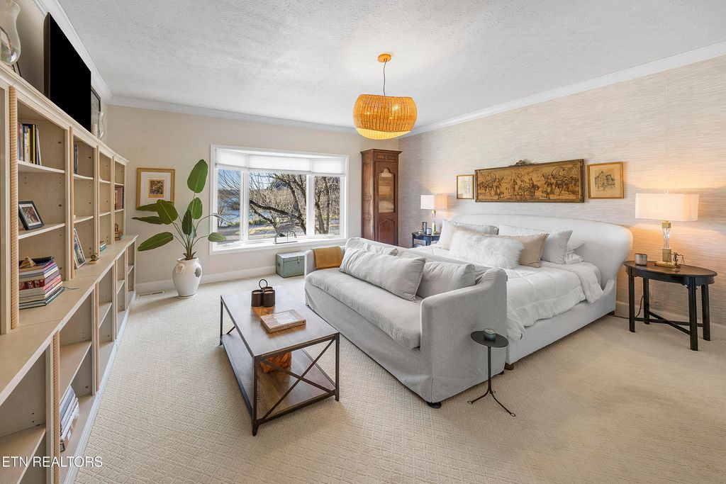 The spacious primary suite offers a refined, designer feel and includes a custom walk-in closet. The primary bath awaits completion, providing a wonderful opportunity for new owners to add their own personal touches.