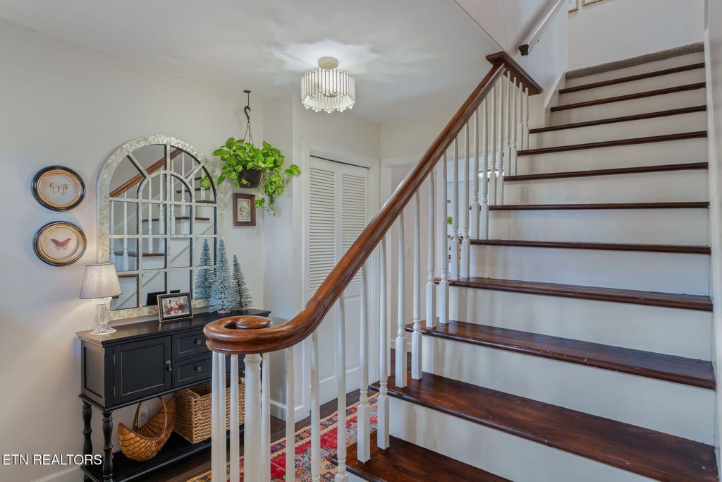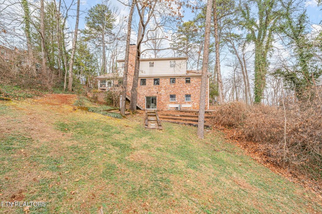 Welcome to 329 Forest Oak where privacy can be found on over an acre of land with private forest, rolling hills, and flat play spaces - all within minutes of some of the most key areas of Knoxville. This is a home made for friends gathering and children playing, with room to spread out and enjoy one another. Where warmth is felt in the open floor plan with a stately, wood burning fireplace right in the middle, and where cozy conversation happens in the picturesque exposed brick sunroom. Sit on the grand two-story front porch and enjoy your coffee while the kids play. Owners added charm with new casement windows in the kitchen, large double-hung windows facing the porch, and a feature door down the hallway. A large primary suite on the main level is tucked away with ensuite bath, including a walk-in shower. The entire main floor has new Anderson windows. Up the wood staircase, you'll find two generous secondary bedrooms with enormous closets. These two bedrooms are joined with a private bath, jack and jill style. A third room upstairs - currently used as a nursery - could serve as a craft room, office, or play space. The walk-out basement is multifunctional with a large bonus space and brick fireplace, a large bedroom, full bath, and laundry room. If you need a separate living space, this basement can serve that purpose. There is ample storage inside and out, including two storage rooms in the basement. The backyard is private and even has a rustic kid cottage with working windows and pretend fireplace. This is truly a treasure of a home meant for a family to have room to entertain and grow.