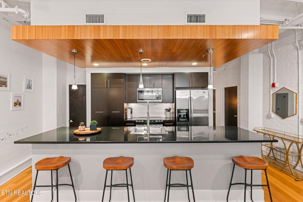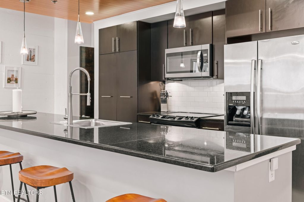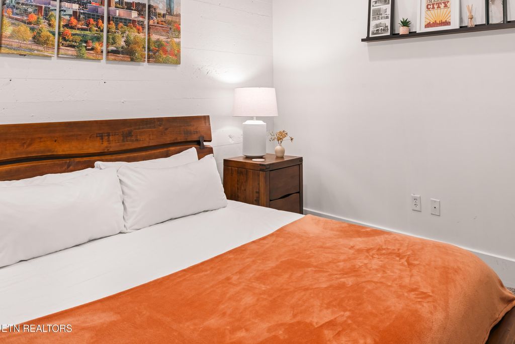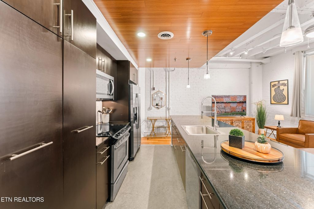 Experience urban living in the heart of Knoxville's historic Jackson Avenue Warehouse District with this captivating 1-bedroom, 1-bath condominium in the iconic Southeastern Glass Building. Boasting soaring 9'+ ceilings and wood flooring throughout, the open-plan interior invites you into a bright, contemporary space that blends original character with modern finishes. The kitchen features custom cabinetry, sleek granite countertops, and a central island, perfect for casual meals and entertaining. A full suite of stainless-steel appliances and generous cabinet space elevate everyday living. Retreat to the main-level primary bedroom and spa-inspired full bath, with thoughtful design and quality finishes. This unit also includes an attached private garage or flex space, offering exceptional convenience and secure parking/bonus storage "” a rare find in downtown condo living. Residents enjoy private access from the alley, secure building entry with elevator access. Location is truly unbeatable: just steps to Balter Beerworks, Sweet P's BBQ, Old City shops and nightlife, and Market Square attractions "” all within easy walking distance. Whether you're seeking an owner-occupied urban home or a distinctive investment opportunity, this stylish condo delivers the perfect combination of historic charm, modern amenities, and downtown lifestyle. Buyer to verify all information.