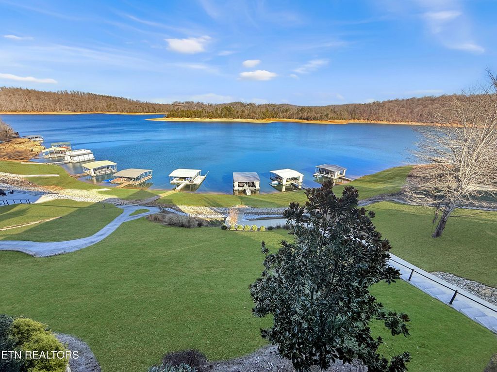 Professionally landscaped grounds lead to a private waterfront setup featuring a two-slip dock with two Hydro Hoists, and electricity and water, golf cart path and stairs to the dock, two dock storage areas, and kayak storage. The community also offers a community center with pool, adding even more recreation options. This turnkey property delivers the complete lake lifestyle as a primary home, vacation retreat, or investment opportunity.