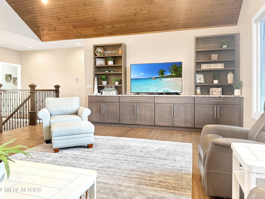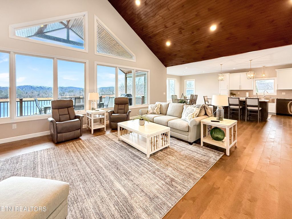 The lower level provides a second wet bar with two mini fridges and additional living space, creating two generous gathering areas for family and guests. Andersen windows bring in abundant natural light, with select crank-open windows to enjoy fresh lake breezes, while Legrand Decora switches add a modern touch throughout. Outdoor living shines with covered decks, two covered patios, and low-maintenance Trex composite decking, all positioned to capture the views.