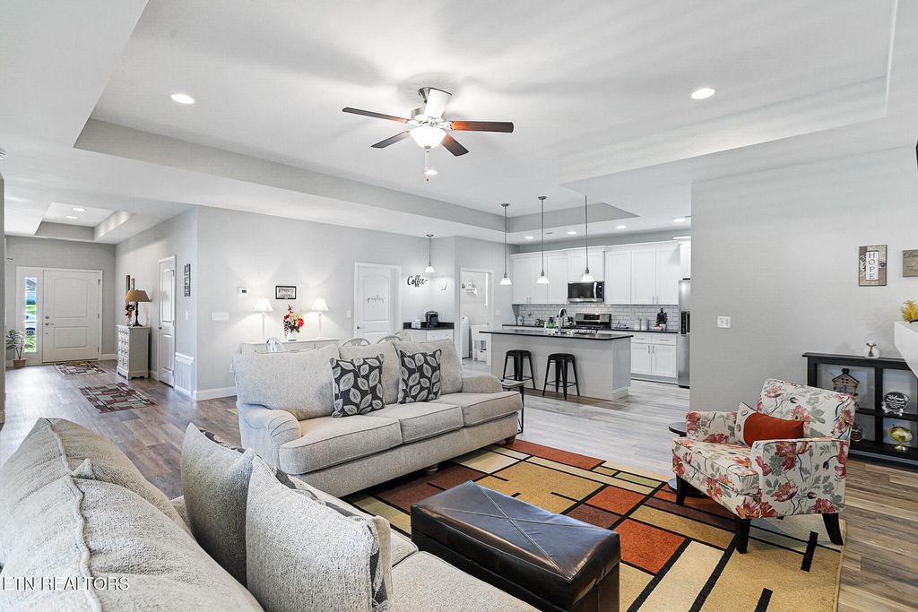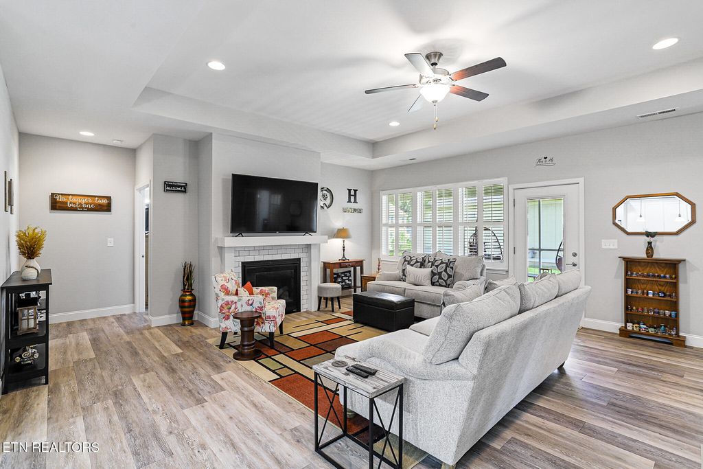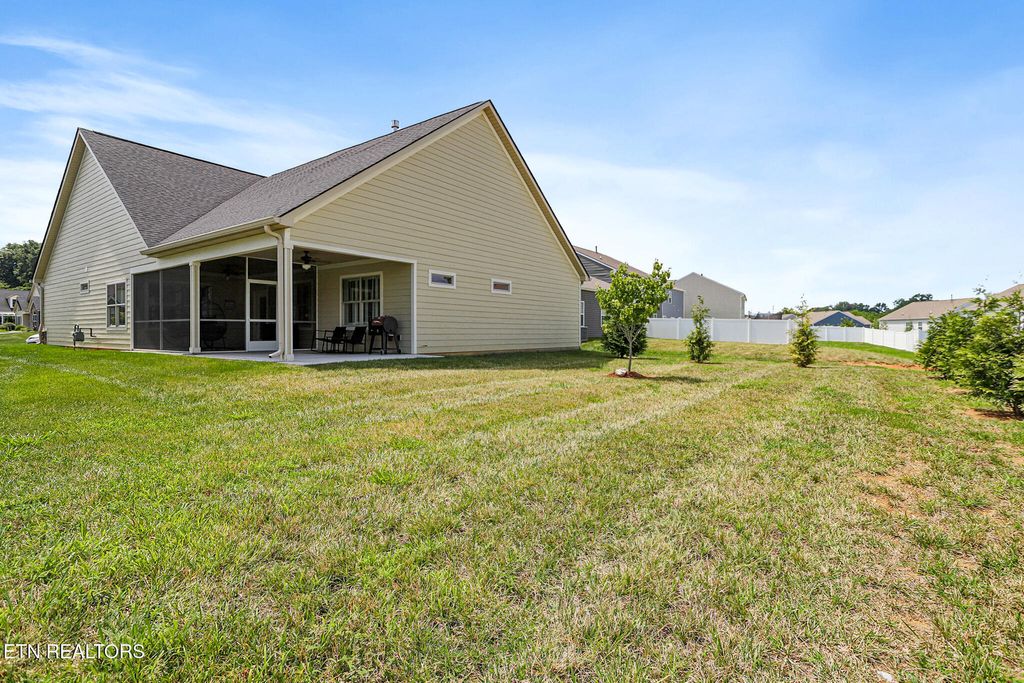 Welcome to this beautifully maintained 3-bedroom, 2-bath home featuring Hardie siding with a striking stone front and fresh exterior cleaning. Inside, you'll find stylish LVP flooring throughout, with tile in the primary bathroom, plantation shutters on all windows, and elegant tray ceilings in the living room and kitchen. The open-concept kitchen boasts leathered granite countertops, a dedicated coffee bar, a walk-in pantry, and all appliances"”including washer and dryer"”convey with the home. The third bedroom is a flex room that can easily function as a guest room, office, or hobby space"”offering versatility to suit your lifestyle. Both bathrooms also feature leathered granite, adding a cohesive, upgraded feel throughout the space. Cozy up by the gas fireplace or enjoy the extra overhead storage in the garage. Step outside and relax in the screened-in patio or on the covered patio, perfect for enjoying the outdoors in comfort. There's even a gas line hookup for an outdoor grill, ready for your next cookout. The HOA takes care of everything for easy living: lawn mowing, trimming, blowing grass off patios, sidewalks, and driveways, trash pickup, and access to top-tier amenities including the community pool, clubhouse, day boat dock, and dedicated RV/boat parking. Enjoy comfort, flexibility, and a carefree lifestyle"”this one has it all! All information is deemed reliable but not guaranteed. Buyers are advised to verify all essential details in real estate transactions.