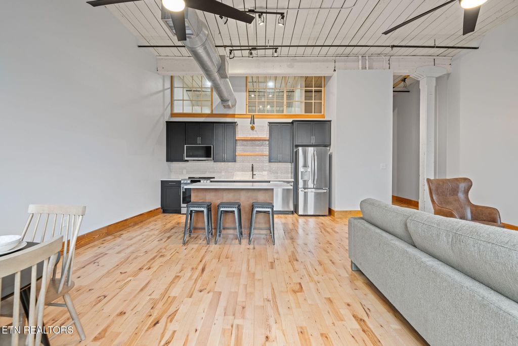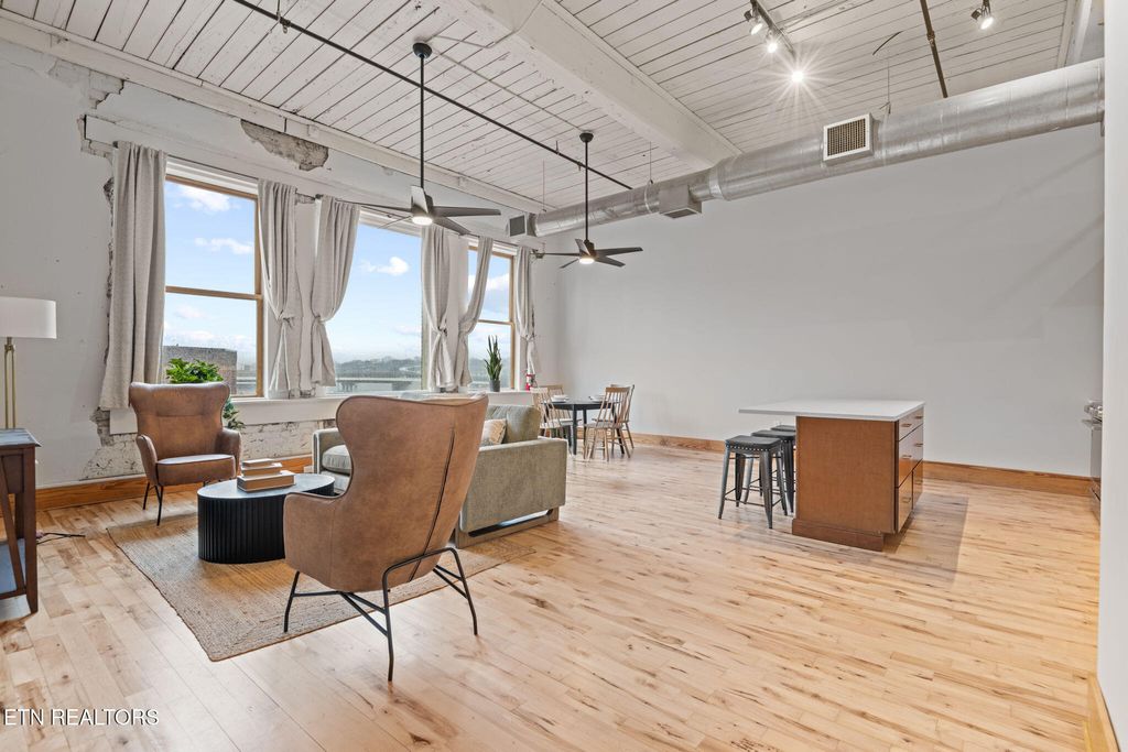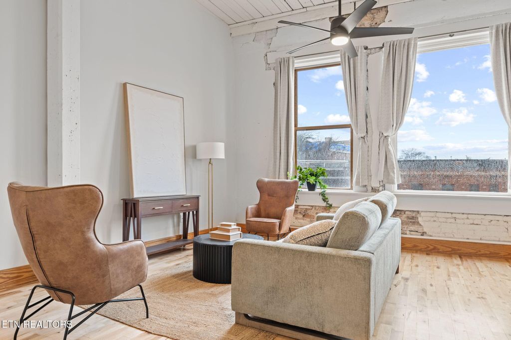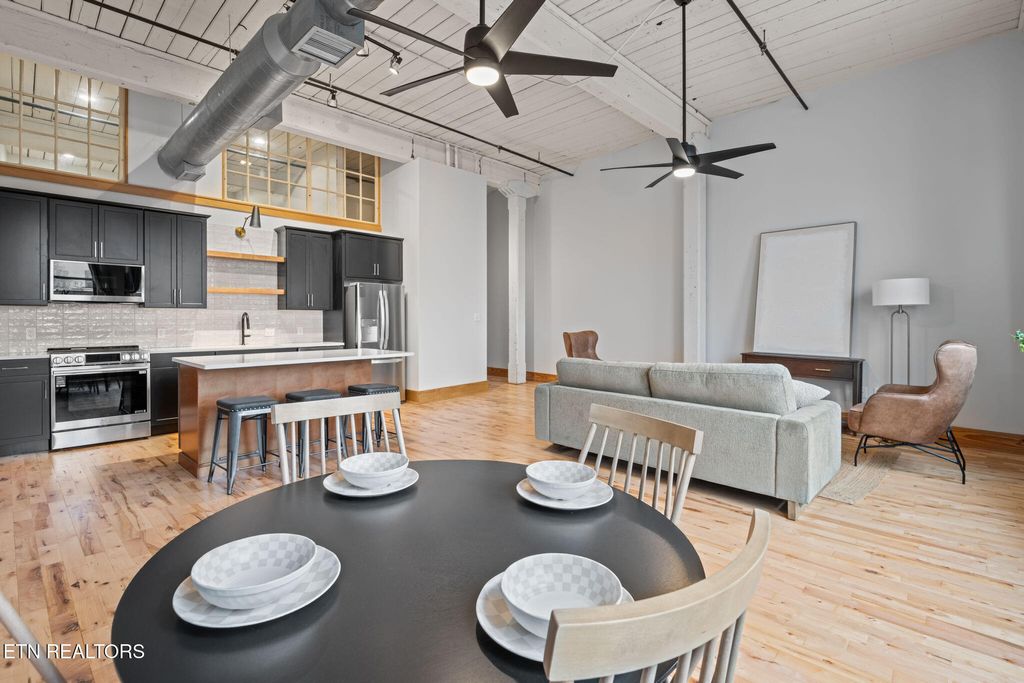 Rare opportunity to own a recently renovated residence in the historic Emporium Building on the iconic 100 Block of Gay Street. This 2-bedroom, 2-bath unit blends character with modern updates, featuring high ceilings, oversized windows, and a view overlooking Gay Street. Originally constructed in the 1890s and restored in 2005, the Emporium Building is ideally located in the heart of Knoxville's vibrant Arts District, just steps from Market Square, the Old City, and Knoxville Smokies Stadium. Residents enjoy access to a spacious shared courtyard, and the building is pet-friendly.With approved short-term rental capabilities, this property offers exceptional flexibility as a primary residence, second home, or income-producing investment. Taxes are based on estimated amounts.