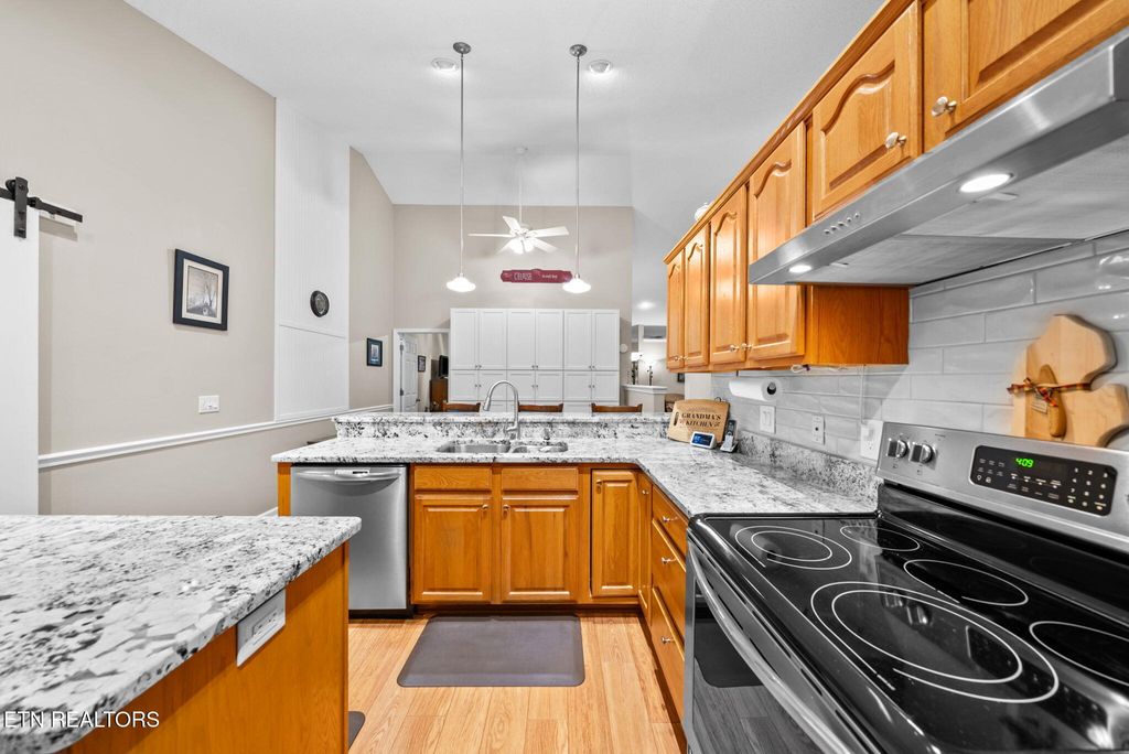 Step into the bright four-season sunroom from the great room"”perfect for relaxing with a book or enjoying views of the backyard year-round. The well-appointed kitchen features granite countertops, a tile backsplash, under-cabinet lighting, a center island, abundant cabinetry, and a casual dining area with additional storage.