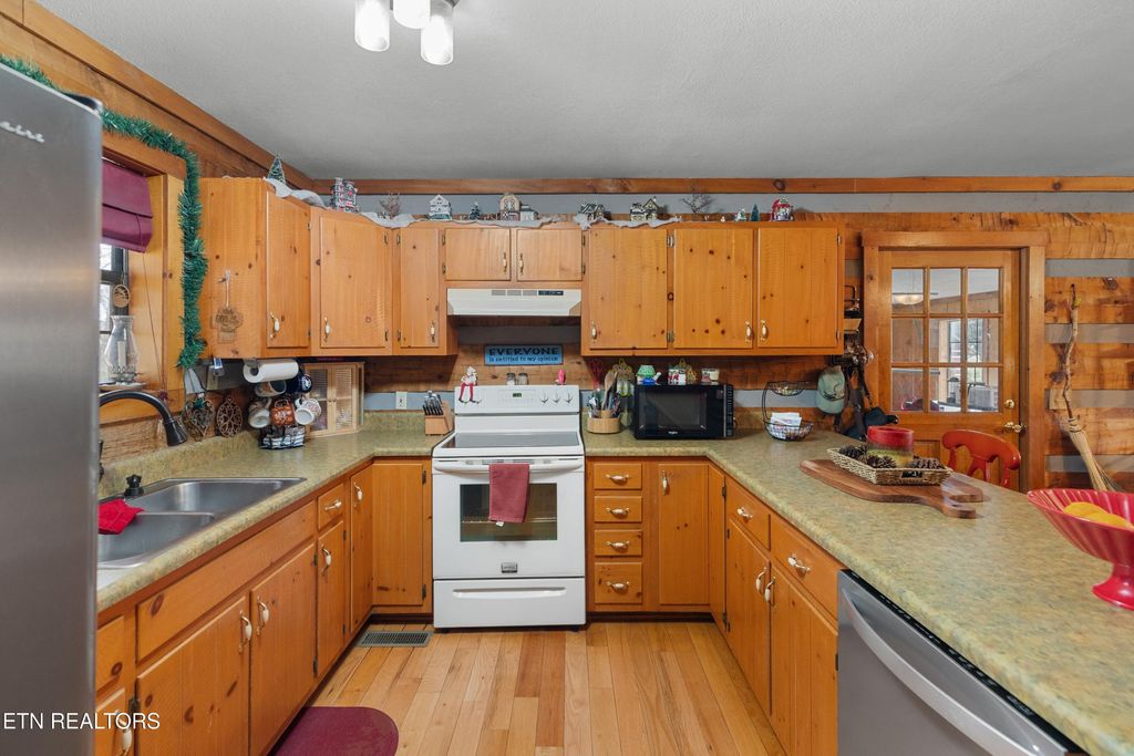 Inside, the open-concept living space features beautiful hardwood floors, exposed wood walls, and abundant natural light. The kitchen is warm and functional with generous cabinetry, ample counter space, extended counter space with seating, and a seamless flow into the dining and living areas"”perfect for gathering with family and friends. The living room is cozy and inviting, offering a relaxing retreat at the end of the day.