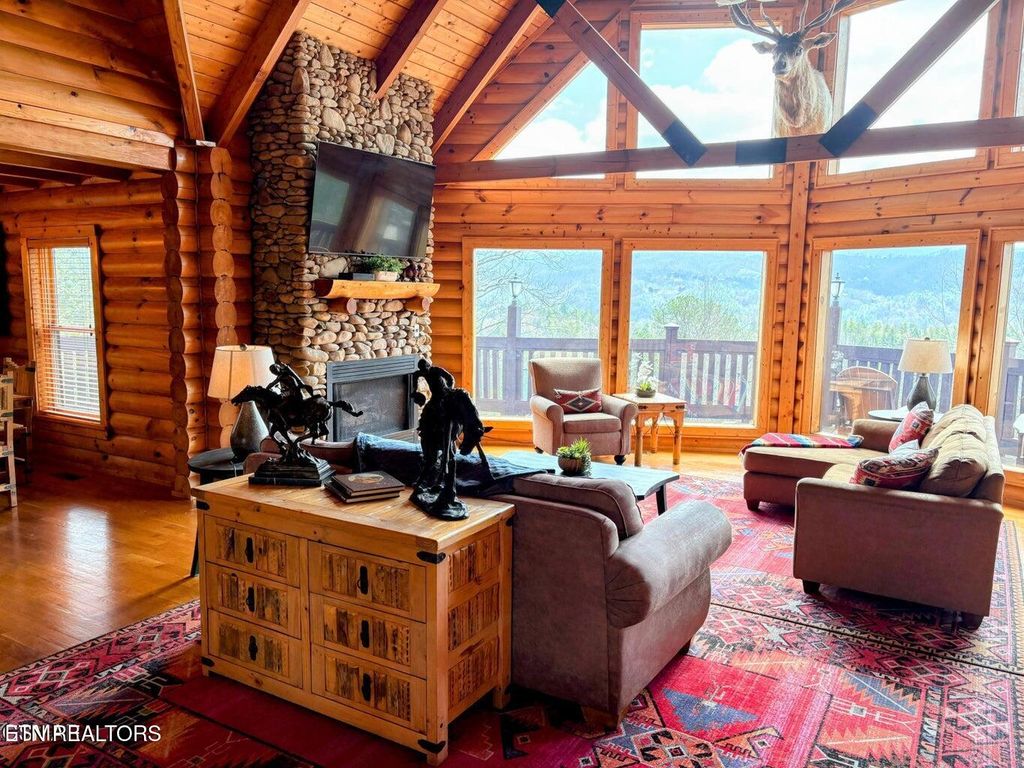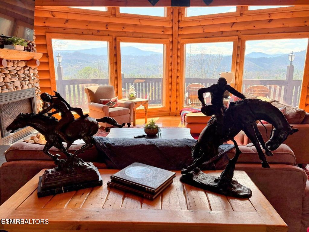 $229K in combined rental projections (see attached documents). Discover a truly unique log cabin that stands apart with its exquisite bronze statues adorning the property. Inside, you'll find captivating Indian artifacts and beautiful paintings featured on every floor, adding a rich cultural touch. The charm continues with stacked stone fireplaces, an inviting outdoor stone fire pit, and breathtaking mountain views that will leave you in awe. This stunning cabin offers 3 spacious bedrooms, a versatile bonus room, 4 full baths, and 1 half bath. Dive into leisure with an indoor pool, unwind in the hot tub, or challenge friends in the game room. Whether you're seeking a fabulous short-term rental opportunity or a serene permanent residence, this property has it all! Nestled next to the main house, you'll find a delightful 2-bedroom cabin that exudes charm and comfort. This cozy retreat boasts its own private indoor pool, perfect for relaxing, and a theater room for movie nights. Whether you choose to rent it separately or in conjunction with the main house, it offers a versatile space that can also serve as a charming guest house. The homes are currently being offered together for $2,200,000 . The seller will consider selling the main house separately for $1,400,000 See mls#308770. The smaller cabin for $880k - see mls#308769