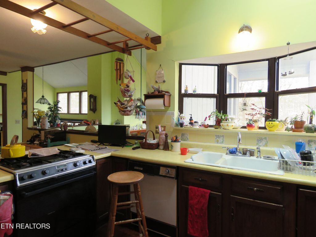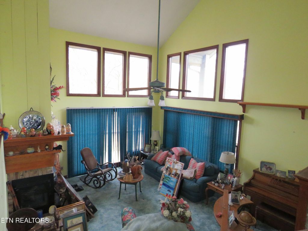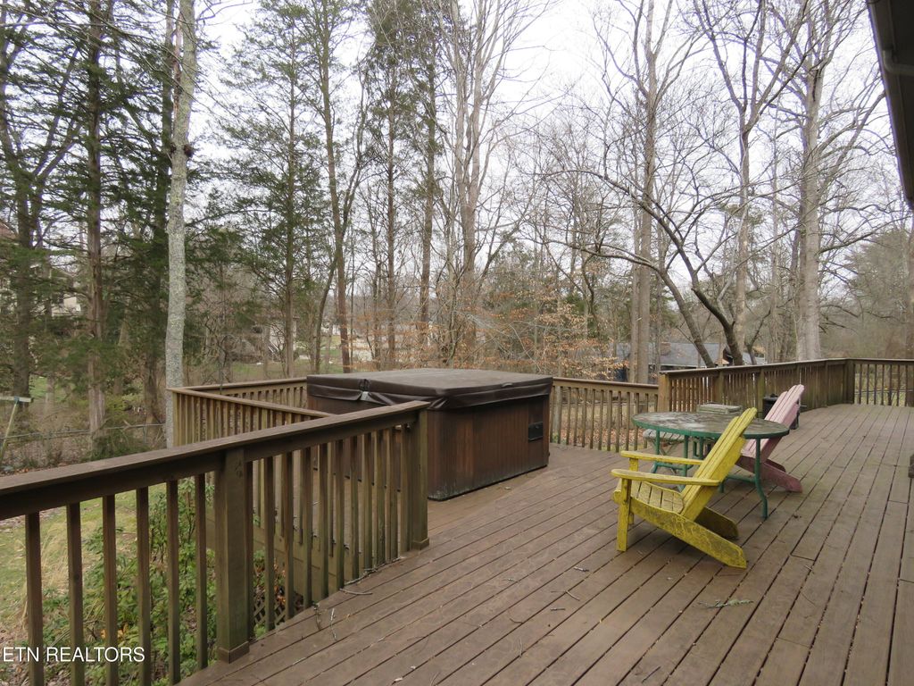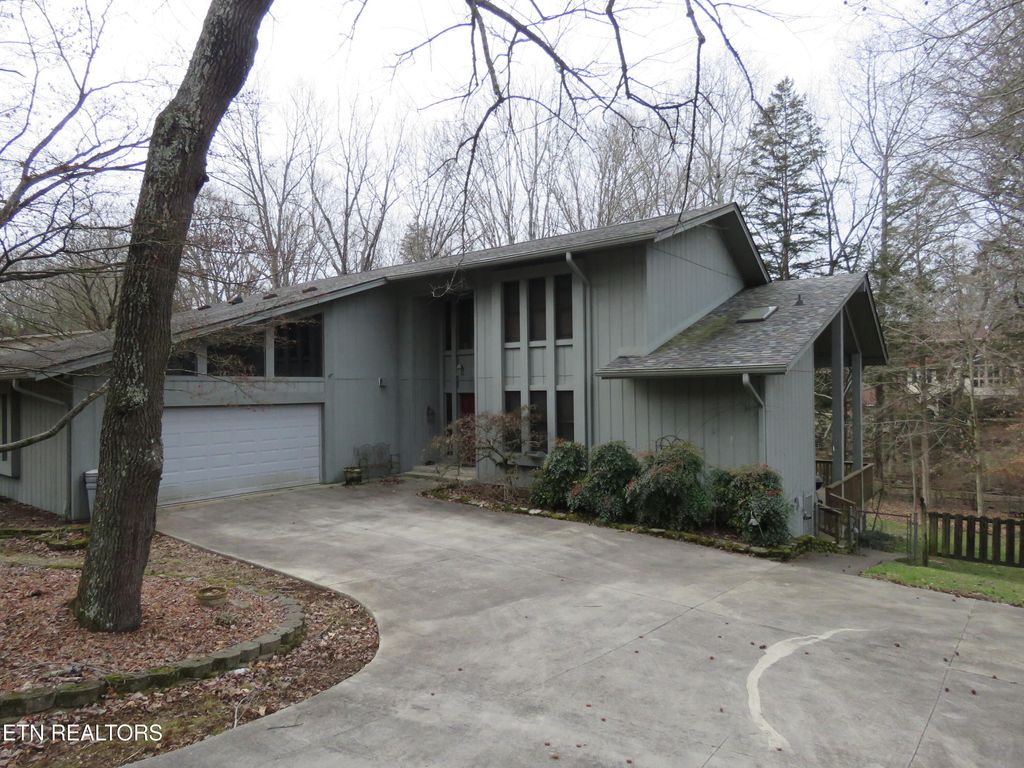 Welcome home to this gem in the city of Oak Ridge. Property has a large wrap-around deck overlooking a nice back yard. Step inside the front door on the main level, which consists of the kitchen, dining area overlooking 2 living rooms, half bathroom, and laundry room. Take a few steps down to a living room that features a wood burning fireplace. Take another set of stairs from the main level to the second living room that features the other side of the fireplace with a wood stove.. Take a third set of stairs to the Primary Suite and Primary bathroom. The upstairs level with a balcony hallway features 2 bedrooms and 1 bathroom. Home is priced with updates needed and being sold as-is.