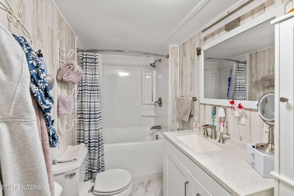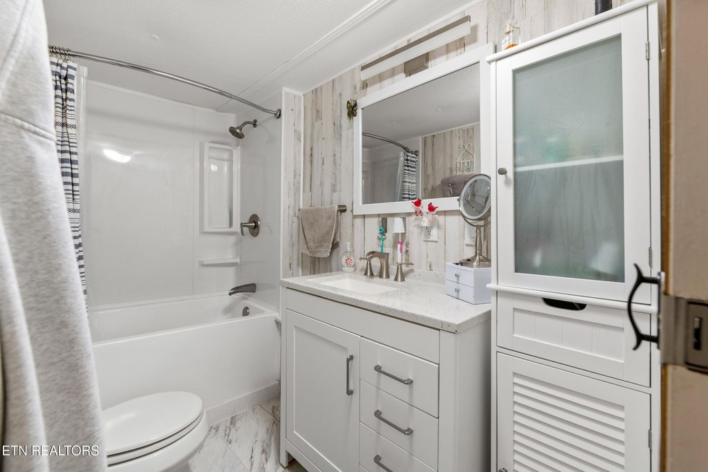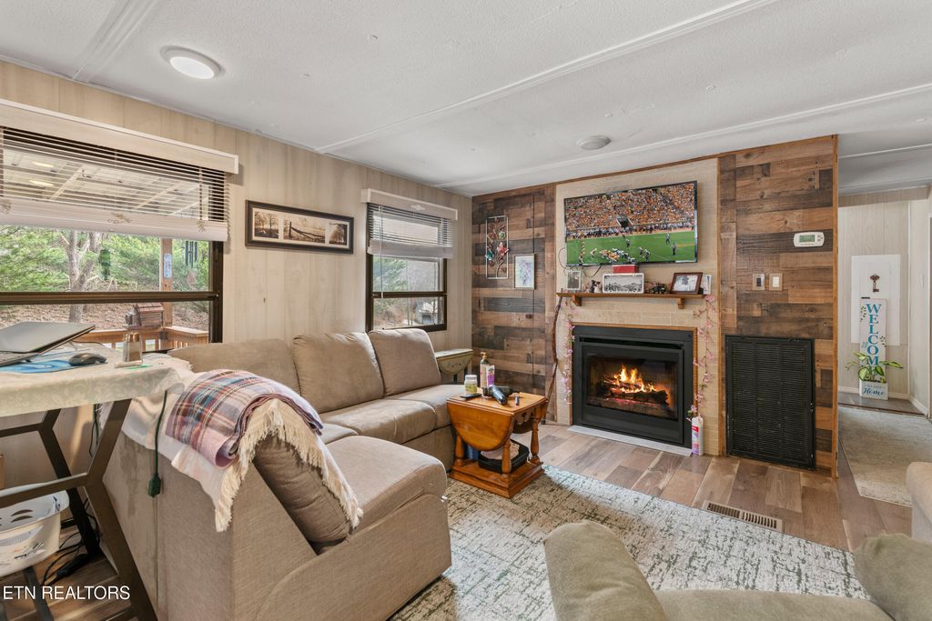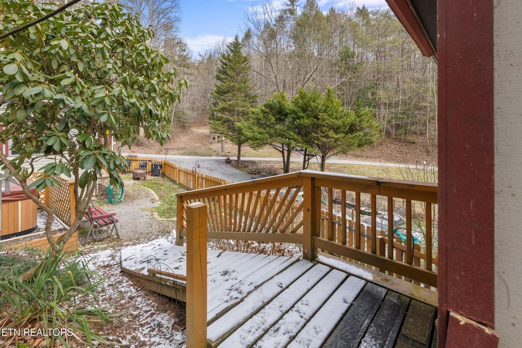 If you are looking for the perfect balance of quiet country charm and convenience to the many amenities and attractions of Downtown Gatlinburg, then look no further. This charming 2 bed, 2 bath home is ready for its next chapter! Tucked in a private setting with no steep roads, this 900SqFt residence makes a gracious first impression with mature landscaping, fenced yard, garden with raised planter beds, covered front porch, carport parking and workshop featuring a wood stove. The interiors are just as welcoming, presented in an open concept floor plan with fresh upgrades like new flooring, walls, plumbing and electrical. A beautiful feature wall draws the eye to a lovely fireplace in the living room. Steps away, the updated kitchen boasts warm southern hospitality, equipped with stainless appliances and showcasing ample cabinetry and counter space, including a breakfast bar. Large windows flood the home with natural lighting and capture serene views of the mature trees that embrace the home. Each bedroom is a delight, and a bathroom remodel showcases a contemporary style with tub/shower combo. There is plenty of space to stretch out and make yourself at home throughout this well-planned layout and the laundry/mud room adds to the convenience. The outdoors yields peaceful solitude for gardening or relaxing, with plenty of potential including shortage shed that could be transformed into a hobby room or detached office, among other possibilities. Nestled in a prime location, this charming home offers an incredible opportunity. Don't Miss Out - Call Today! Buyer to verify all information.