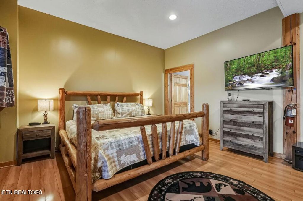 The spacious one-bedroom layout is thoughtfully designed for high-demand overnight stays, with a private primary suite featuring a spa-style bath complete with soaking tub and separate shower"”ideal for couples, anniversaries, and weekend escapes. Offered fully furnished, the cabin showcases warm knotty pine interiors and classic mountain finishes, allowing for immediate rental use.