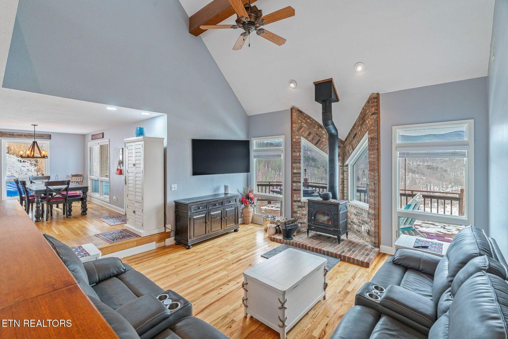 Experience premier lakefront living at this stunning Cove Norris estate. Boasting over 366 feet of deep-water lakefront frontage, this property offers unparalleled views of the open water and the Cumberland Mountains. Situated on a private 2.25-acre lot (plus an included 0.62-acre wooded lot across the street), this 4-bedroom(with one additional room for sleeping), 3-bath retreat comes fully turn-key.