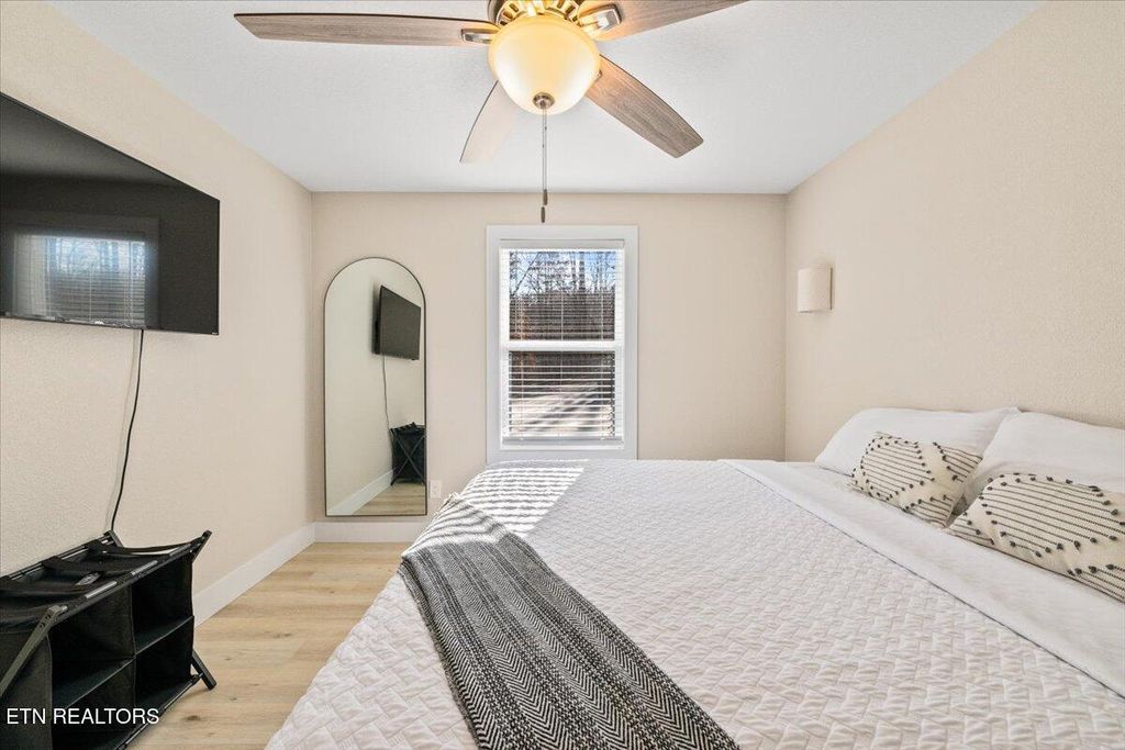 Experience elevated lake living in this stunning, fully furnished white brick rancher with a finished basement, ideally positioned on majestic Norris Lake with breathtaking mountain views and unforgettable sunrises. Located directly beside the iconic jumping bridge at Sugar Hollow Marina, this exceptional property blends upscale design, resort-style amenities, and proven income potential.
