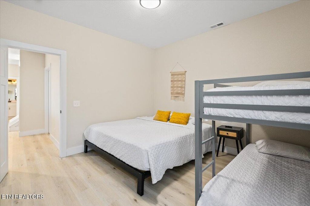 The main level offers a spacious primary suite, along with a second bedroom and bath. The finished basement is designed with guests and rentals in mind, featuring three private en-suite bedrooms, recreation space, and additional sleeping capacity.