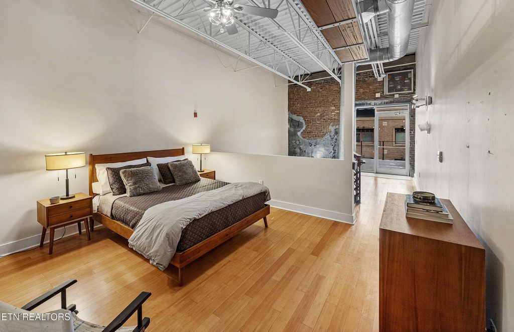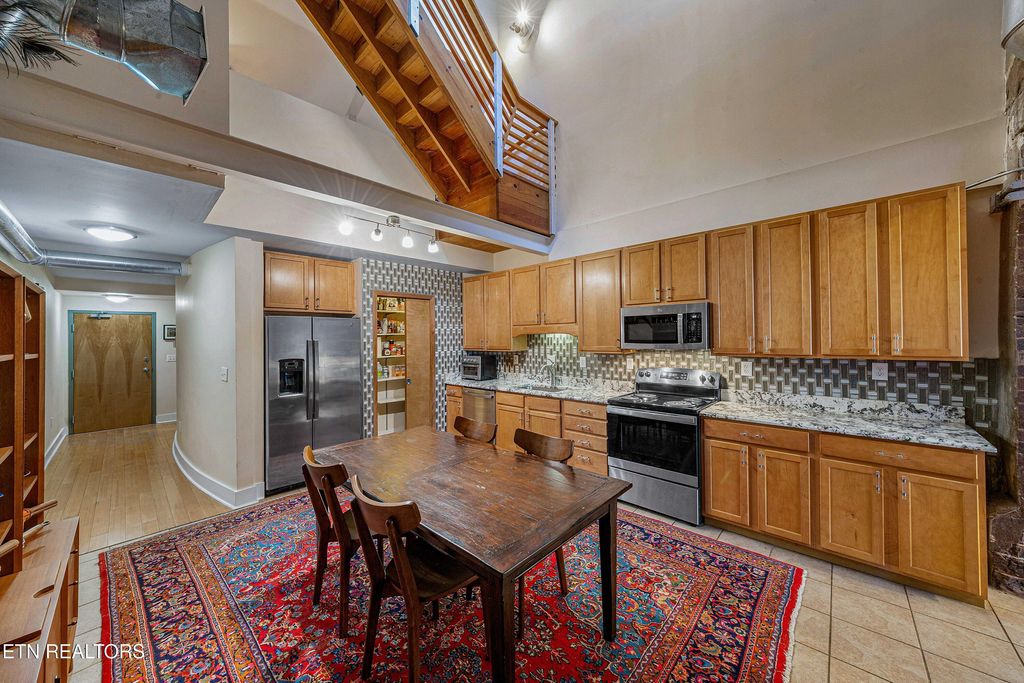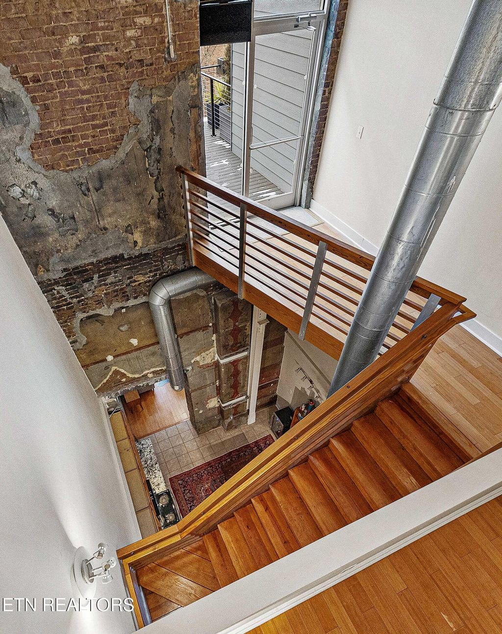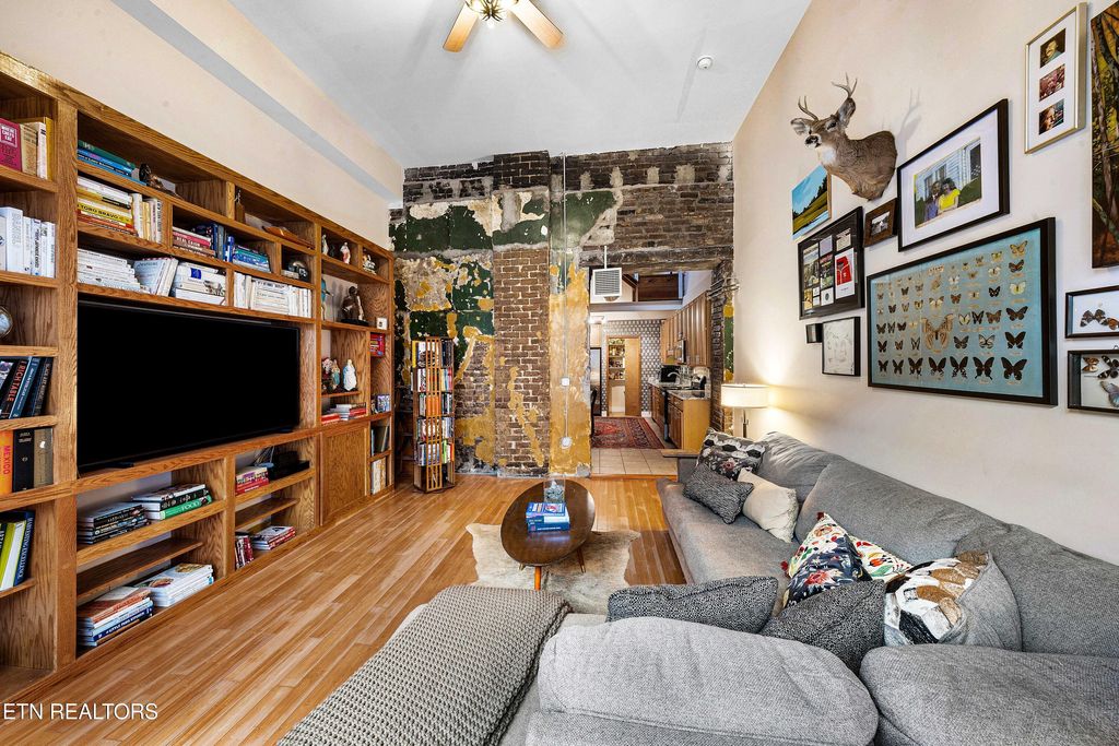 Downtown living in the historic Lerner Loft Building. This striking 2-bedroom, 2.5-bath loft-style condominium offers approximately 1,759 square feet of thoughtfully designed living space across multiple levels, blending timeless historic character with contemporary finishes. Exposed brick walls, architectural beams, cathedral ceilings, hardwood and tile flooring create a dramatic yet inviting atmosphere throughout the open-concept main living area. The well-appointed eat in kitchen features stainless steel appliances, granite countertops, pantry storage, and seamless flow into the living space"”ideal for entertaining. A guest bath with attached dedicated laundry/utility room with washer and dryer, along with extra storage, is conveniently located on the main floor. The second-level bedroom, complete with a full bathroom and large closet, provides flexibility for guests or a home office, while the private third-level primary suite includes a large walk-in closet room and walk-in shower with double vanities. Enjoy city and mountain views from the private 230sf rooftop included in the total square footage"”perfect for entertaining or unwinding while overlooking vibrant downtown Knoxville. This condo offers a quiet retreat while placing you steps from Market Square, Gay Street, dining, shopping, and entertainment....located directly across from Mast General Store and countless downtown favorites. Architecturally restricted and professionally managed, the mandatory HOA includes exterior maintenance, building insurance, and select amenities. Public, off-street, and nearby garage parking options are available with convenient permit rates and typically free evenings and weekends. A private storage cage is located in the lower level of the building and accessed through the Mail Room door entrance. A rare opportunity to own a distinctive downtown loft that truly captures the energy and lifestyle of Knoxville. **Showings begin 2/12/26**