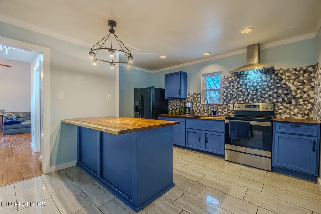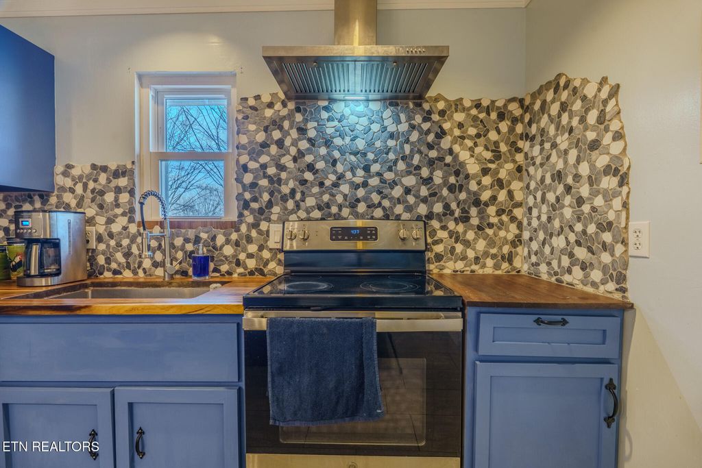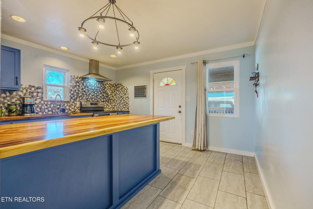 Inside, the fully renovated kitchen shines with new tile flooring, cabinets, countertops, trim, modern light fixtures, a new sink and faucet, stylish backsplash, range, and vent hood "” creating a bright and functional space perfect for daily living and entertaining alike.