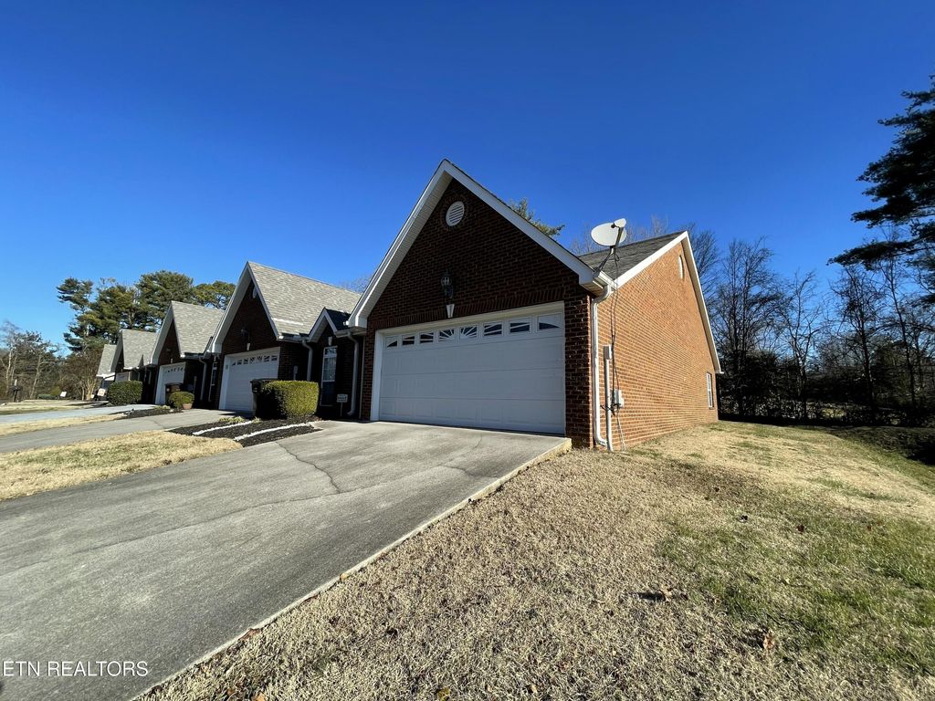 This amazing one-level home in the heart of West Knoxville offers stylish, open-concept living that is move-in ready. This end-unit condo features two spacious bedrooms with walk-in closets and two full bathrooms, including a master ensuite with a jetted tub and walk-in shower. The interior boasts soaring vaulted ceilings, bright natural light, and a kitchen equipped with upgraded hickory cabinetry, gorgeous Caesarstone quartz countertops, and a breakfast bar. The open kitchen and living area, complete with a cozy gas log fireplace, leads out to a private patio. This home also offers a two-car garage and is located in a quiet, one-street community with County taxes only. Enjoy maintenance-free living in a prime location with convenient access to I-40, shopping, and dining.