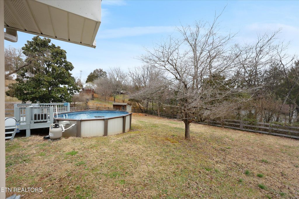 Out back is where this home really shines: a fully fenced yard, an above-ground pool with deck, and two storage buildings for all your tools, toys, and hobbies.
