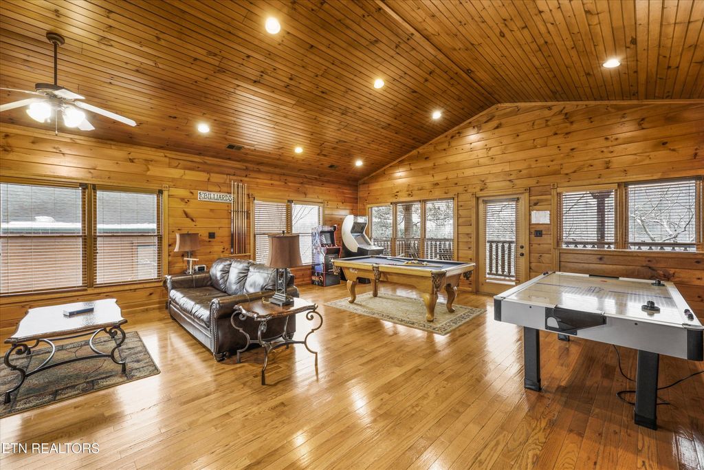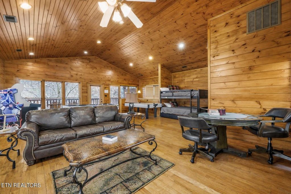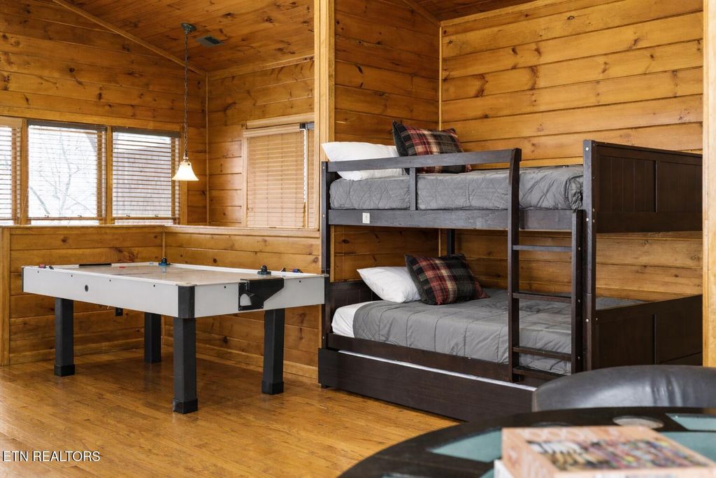 Head upstairs to the top level where entertainment takes center stage. This loft/game room space is designed for fun and memory-making, complete with ample room for games, lounging, and guest enjoyment, plus a fourth full bathroom for added convenience along with the bunks.