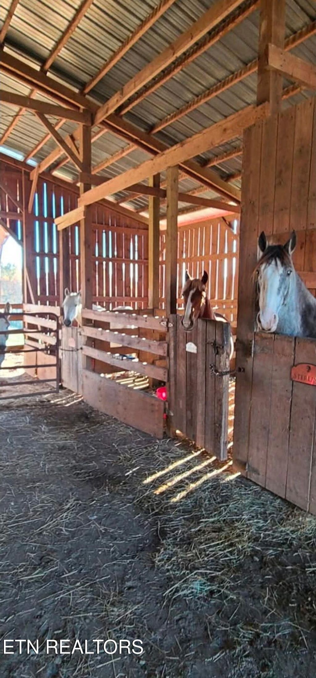 The eat-in kitchen boasts attractive oak flooring, oak cabinetry, and included appliances. Step out the back door to a large screened-in porch and a small deck, ideal for relaxing while enjoying views The main level offers three bedrooms, two full bathrooms, and a convenient laundry room. The finished basement with new carpet is ideal for family gatherings and offers an extra room with a spacious closet. Animals benefit from a barn with electricity, a pond, and a large fenced pasture for country living.