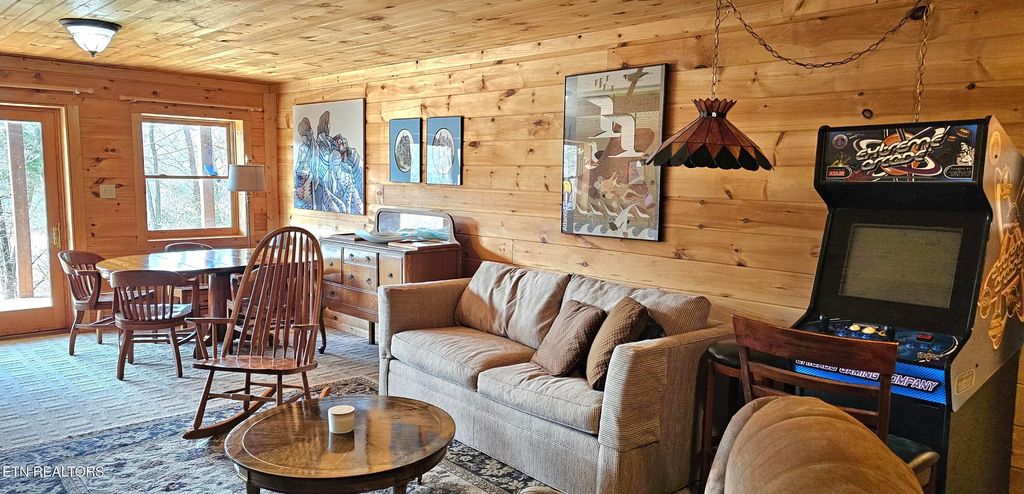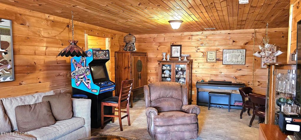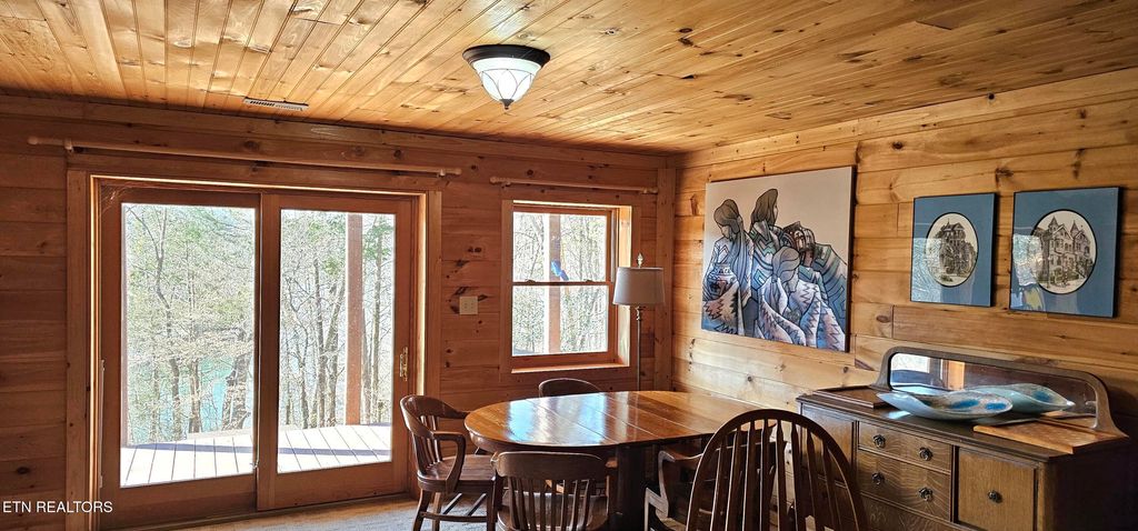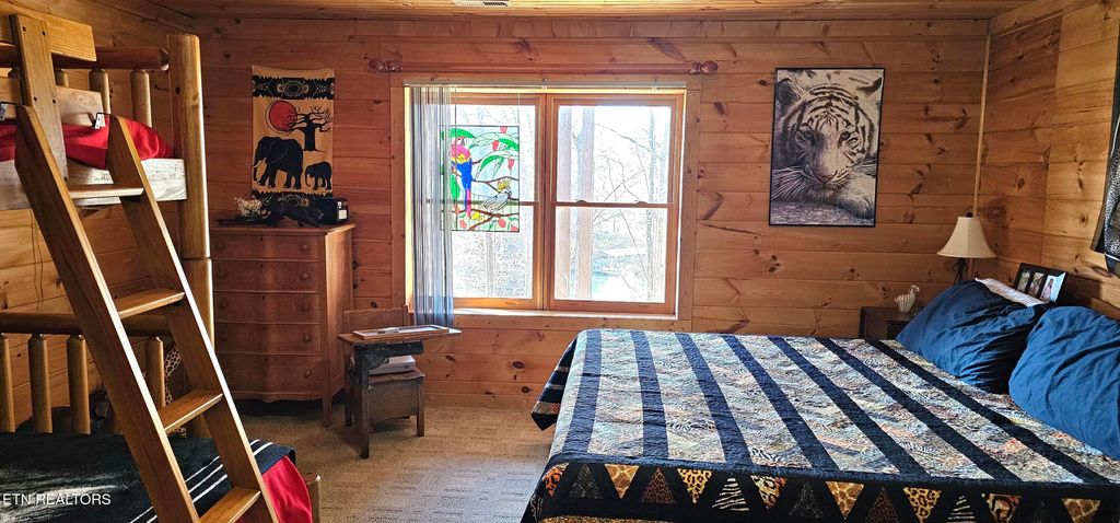 Ready for Summer Fun on the Lake? This lakefront log cabin features Open Living with a large great room with cathedral ceilings, 2 bedrooms, and 2 baths. The Kitchen offers Granite counter tops and Appliances are less than 4 yrs old. There is also an office,, and another bonus room that could be used as guest bedroom, a large storage room, and a utility room downstairs along with another large great room, bedroom and bath. All bedrooms and living areas have doors going out to the decks. The exterior was repainted/resealed about 4 years ago and the roof maintenance completed in the fall of 2025. The well pump has been replaced and the septic system has been serviced. The deck overlooking the lake spans the full length of the house giving great views of the lake. There is a 24 x 24 detached 2-car garage and a 10 x 16 storage shed. Both have been recently painted. There is a boat dock with a Sun Deck and a storage shed for boating toys. The boat and accessories will be left with the home and also a golf cart for going back and forth to the dock. The hot tub will also be left with the property. This home has so much to offer, you don't want to miss it. This is lake living at its finest.