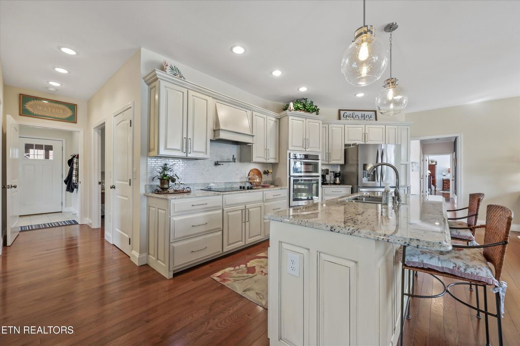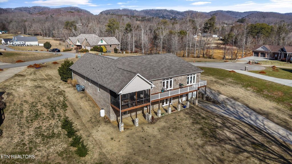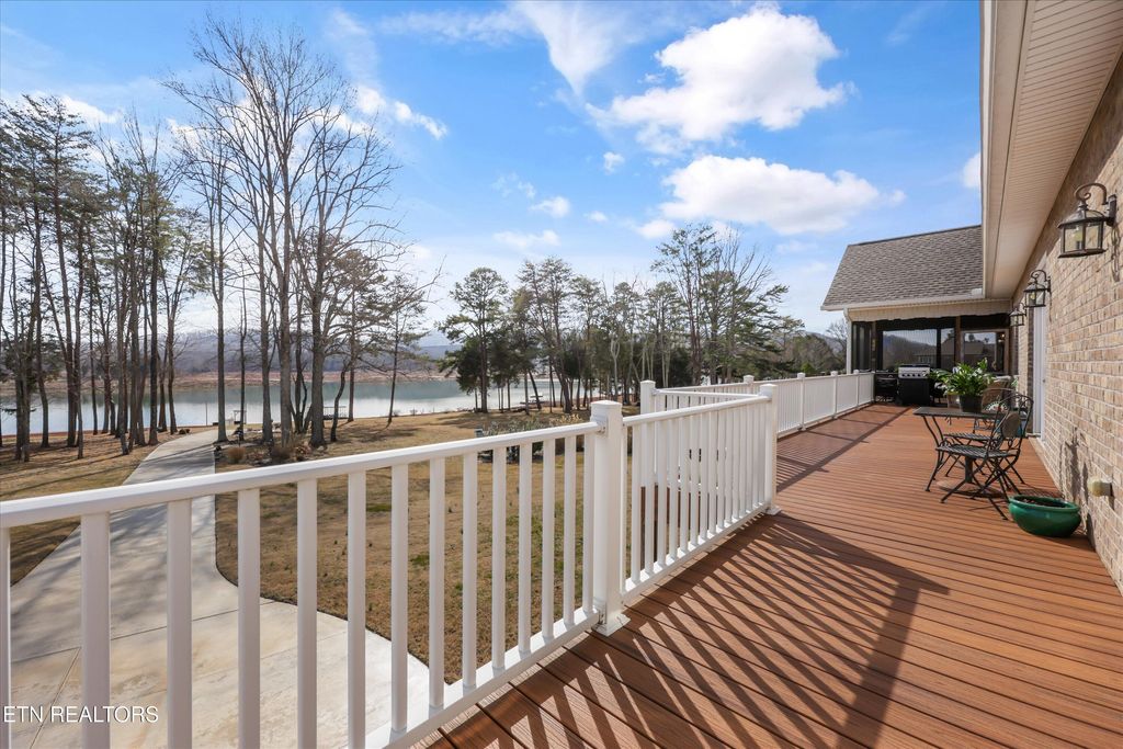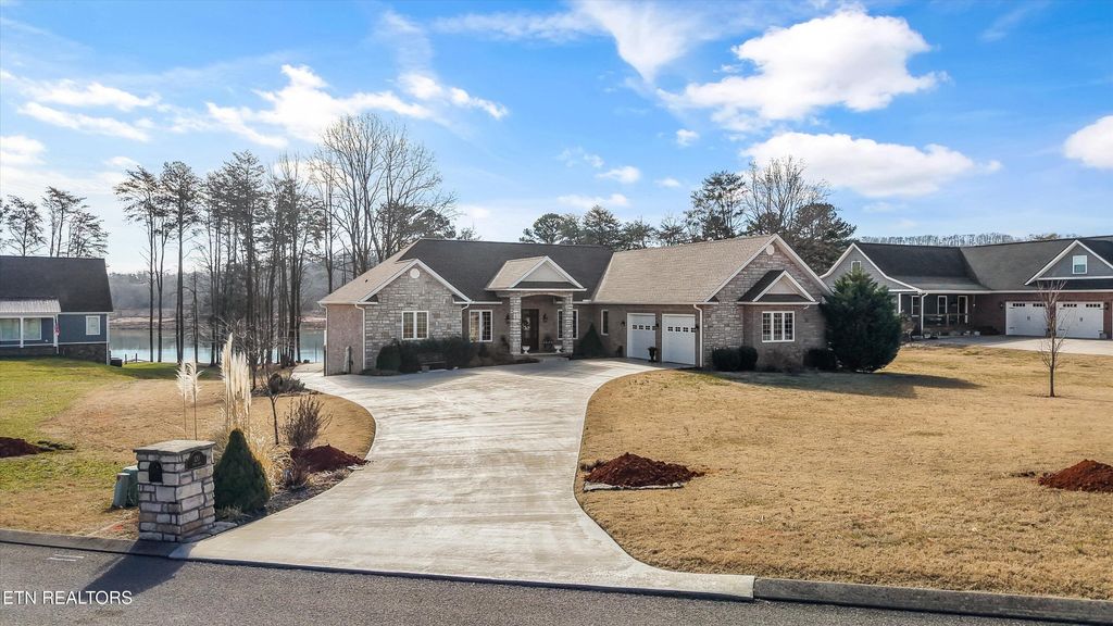 Wake up to the water every single day in this stunning 4BR/3.5BA basement ranch in Bean Station! Custom built is this 2018 all brick basement ranch home and offering approximately 4,328 sq ft, this lakefront home sits directly on the water with its own private dock. This lifestyle is great and only for those are looking for a rare find. Tucked at the end of a quiet cul-de-sac with no HOA, this home delivers space, flexibility, and freedom. The main level features a spacious primary suite with two walk-in closets and a large spa-like bath that will not disappoint. On the opposite side of the home, you'll find an additional bedroom, creating privacy for family or guests. The open-concept family area flows into a stunning kitchen with an oversized pantry and plenty of room to gather, entertain, and enjoy the lake views. Step out onto the screened porch, perfect for those East Tennessee spring evenings overlooking the water and extended deck. Downstairs is truly a 2nd living space, where the versatility really shines. The finished walkout basement includes a large rec room, two additional bedrooms, a full bath, and even its own kitchen. Ideal for multi-generational living, extended guests, or the ultimate entertaining space. With a 3-car garage (including one bay in the basement), ample storage, and direct lake access, this property checks boxes you didn't even know you had. Lakefront. Cul-de-sac. No HOA. Dock included. This is more than a home, it's a lifestyle.