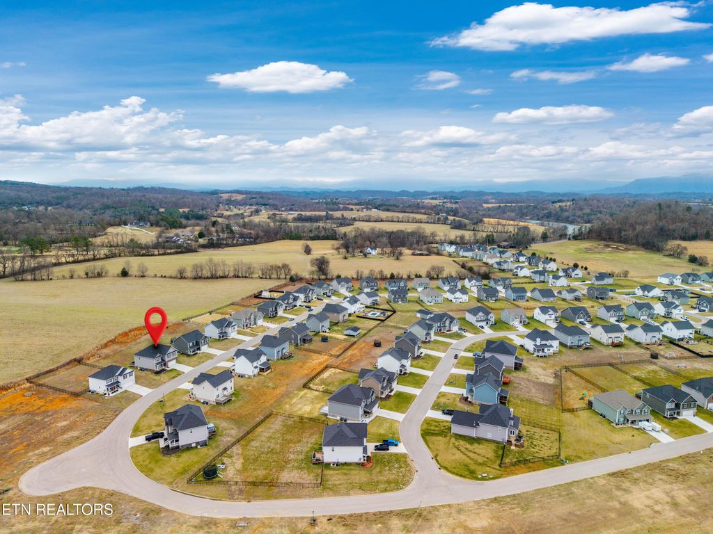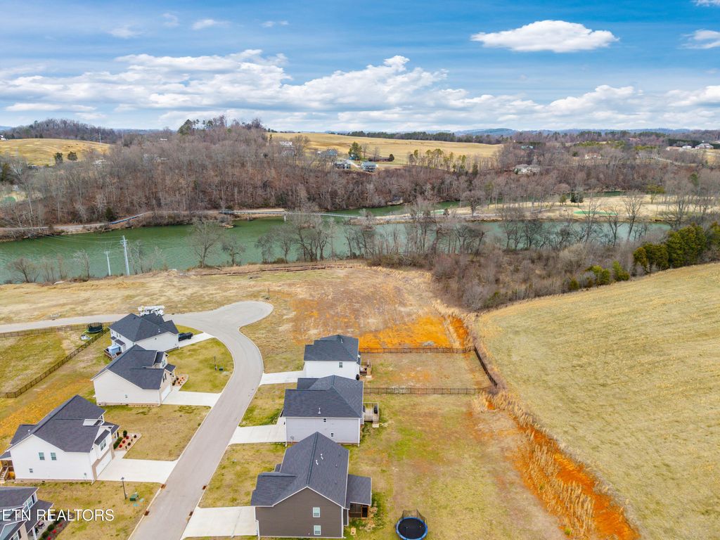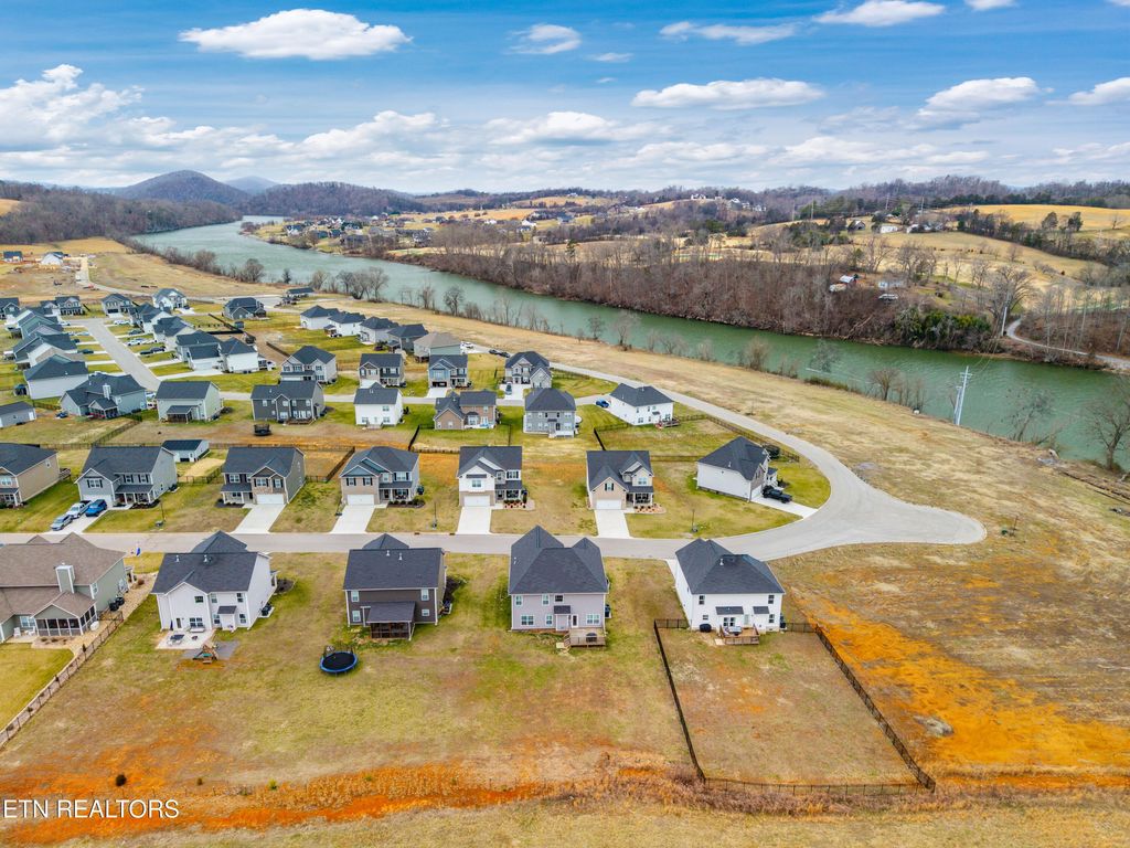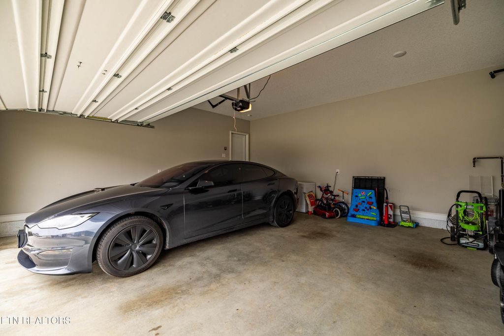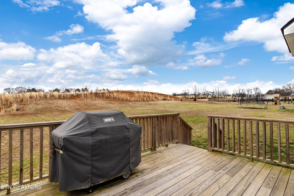 Back downstairs, a charming deck provides the perfect spot for grilling and outdoor entertaining, overlooking a backyard that backs to open farmland for added privacy--no rear neighbors! The two-car garage comfortably accommodates vehicles with extra storage space and includes a Tesla charging station. All of this is set in a neighborhood tucked into a bend of the French Broad River, complete with a community pavilion and boat launch! Don't miss this opportunity to own a beautiful home with rare backyard privacy in a convenient Sevierville location! Samsung Frame TV in living room, Samsung Bespoke AI Family Hub refrigerator in kitchen, and Tesla charger in garage all convey with the home. Select furniture pieces, Tesla, and VW Atlas are also available for purchase separately.