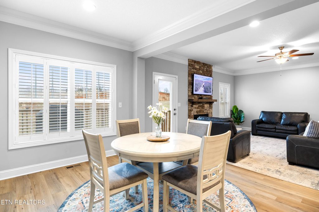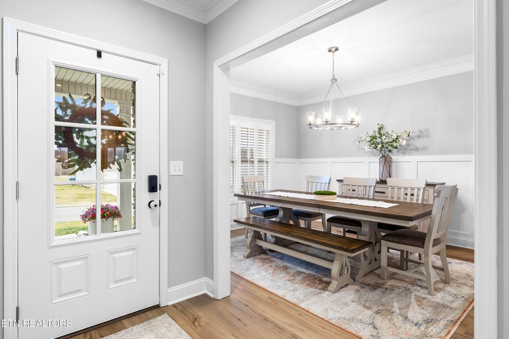 Proudly showcased in the 2023 Parade of Homes, this stunning residence blends timeless design with modern comfort. A formal dining room greets you upon entry, setting an elegant tone. Beyond, a beautifully designed kitchen with a generous island opens to the breakfast area and living room, creating a warm, connected space for gathering and entertaining, while plantation shutters enhance most of the main-level windows. Designed for flexibility, the home offers four bedrooms plus a bonus room, including a convenient main-level bedroom with its own en suite bath.