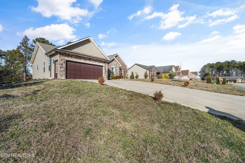 Move in ready house built 2018 and only one owner. Excellent well constructed home in prime location in upscale subdivision. Couple minutes to I-40 and ten minutes to Knoxville with no city taxes and low Knox County taxes only located in fast growing East Knox County. Wood burning fireplace and large stack of seasoned firewood . Modern master suite complete with tiled walk in shower, wide plank type flooring, new refrigerator, security system, nice private back deck, professional landscaped and metal fenced in back yard waiting on new owner. Better hurry for private showing!
